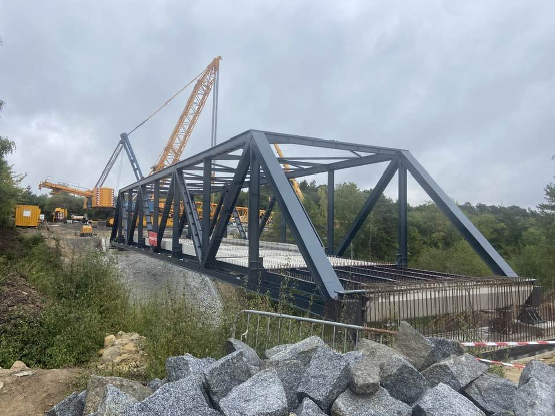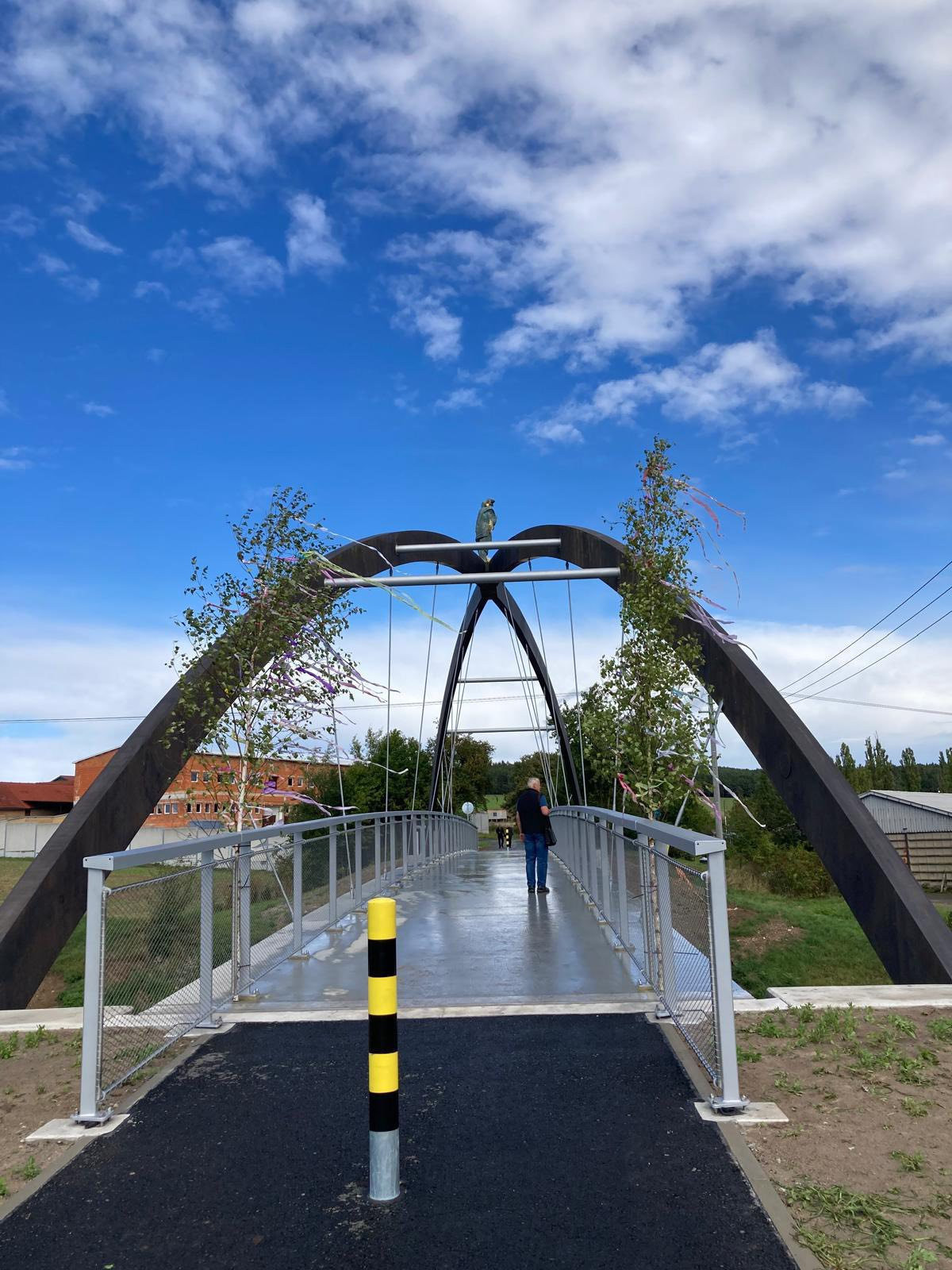 Před týdnem sem byl přenesen starý příhradový most, navržený Františkem Faltusem a vyrobený v roce 1931 ve Škodových závodech. Tam ho také využívali, a když na svém původním místě dosloužil, byl sejmut a nyní ho obří jeřáb usadil na novou pozici, kde slouží pěším a cyklistům.