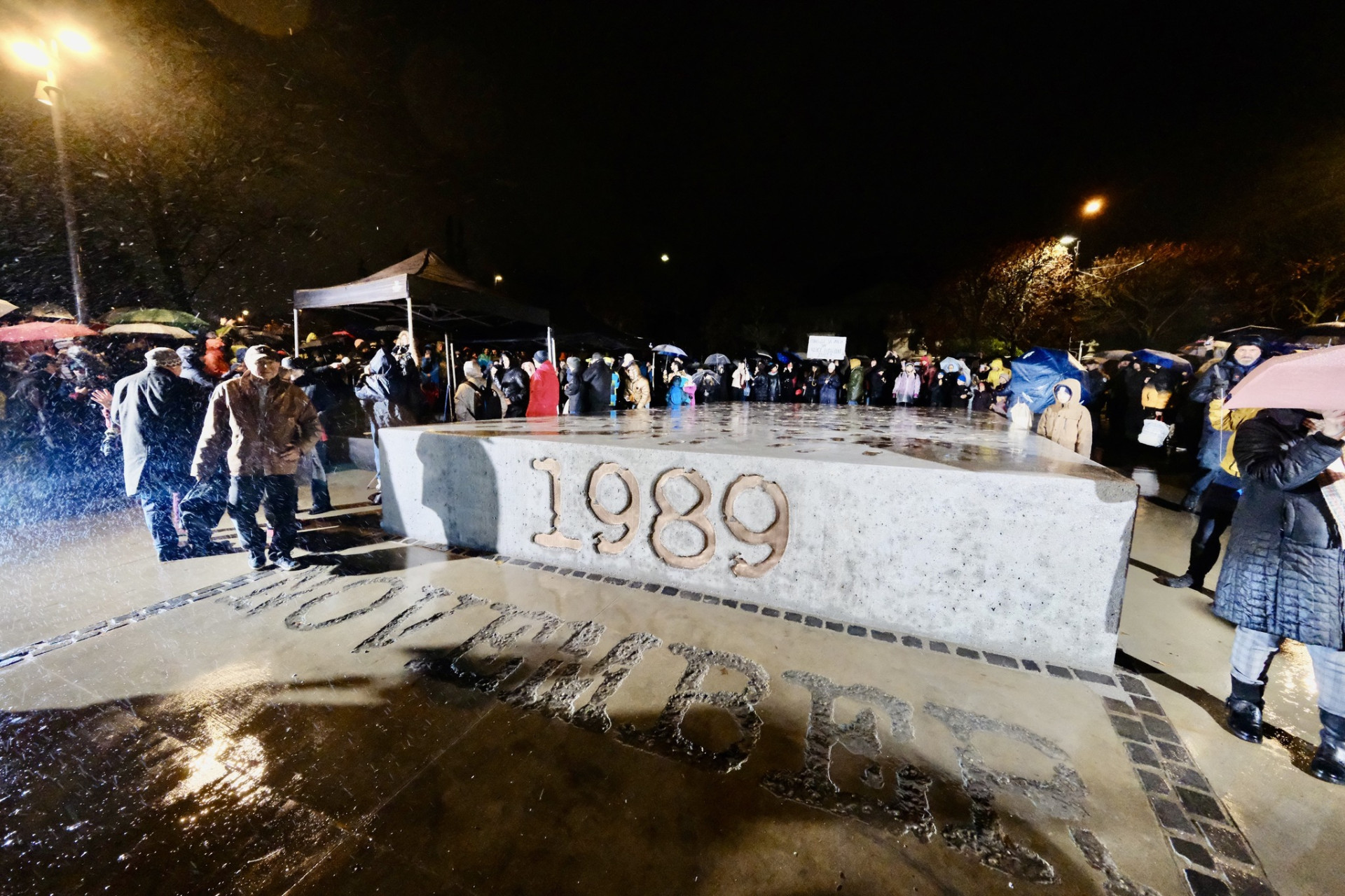 Památník byl odhalen symbolicky 17. listopadu. Ještě tentýž den ho obestoupili demonstranti. Nachází se totiž naproti budovy Úřadu vlády, před kterou na 50 000 lidí protestovalo proti vládě Roberta Fica. 17. listopad byl letos na Slovensku celkově jiný. Poprvé tam nebyl státním svátkem s pracovním volnem – změnu prosadila právě současná slovenská vláda. I vůči tomuto rozhodnutí lidé okolo nového památníku vyjadřovali nesouhlas.