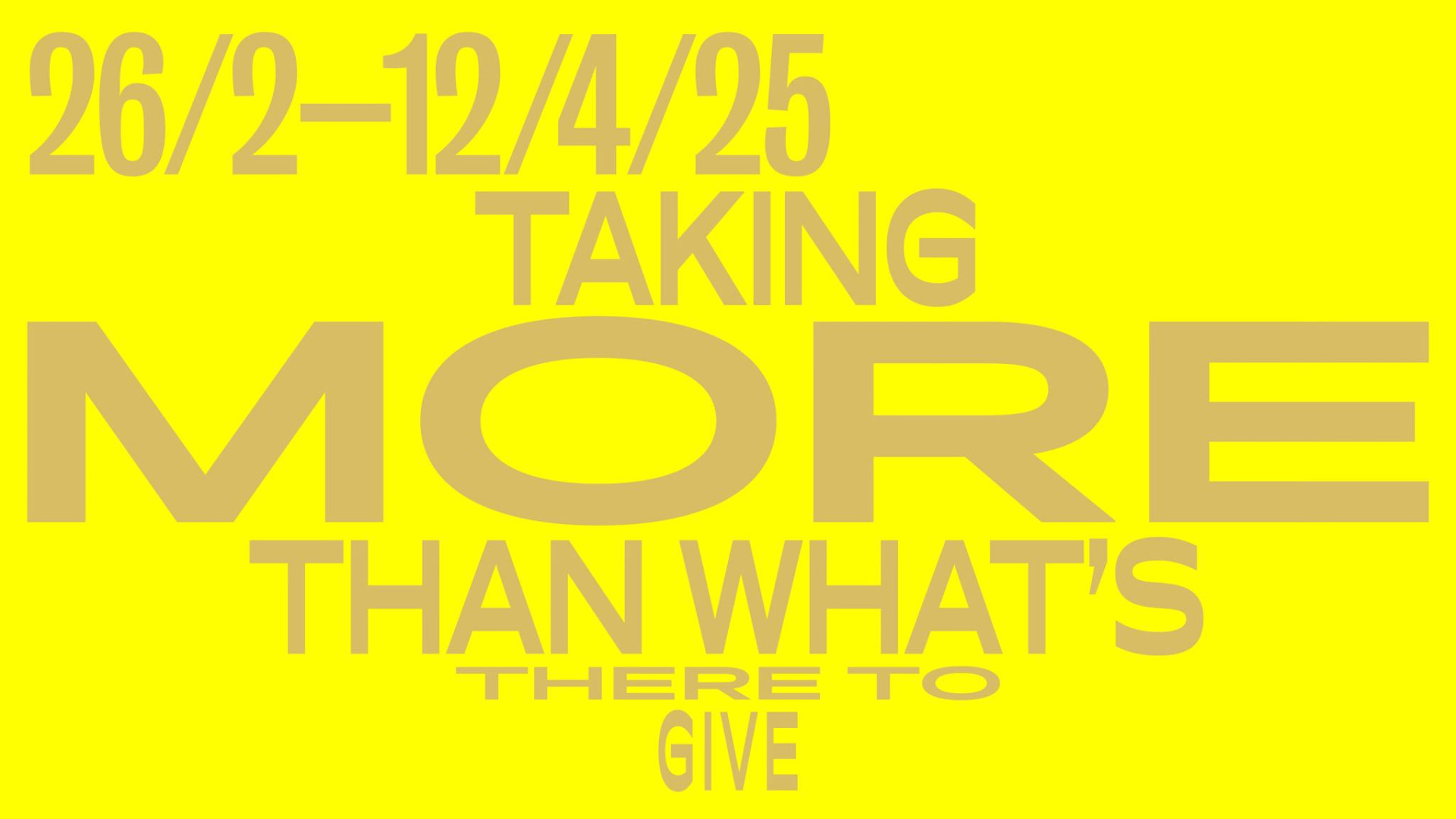 Taking More Than What’s There to Give (Brát si víc, než je možné dát) je název nové výstavy, která začíná v galerii VIPER. Vernisáž bude toto úterý 25. února v 19 hodin. Výstava se zabývá tím, kolik budovy potřebují surovin, kolik energie a kolik zdrojů a představí se tu výzkumy a příběhy na toto téma. Kurátorsky připravila architektka a publicistka Alina Paias.