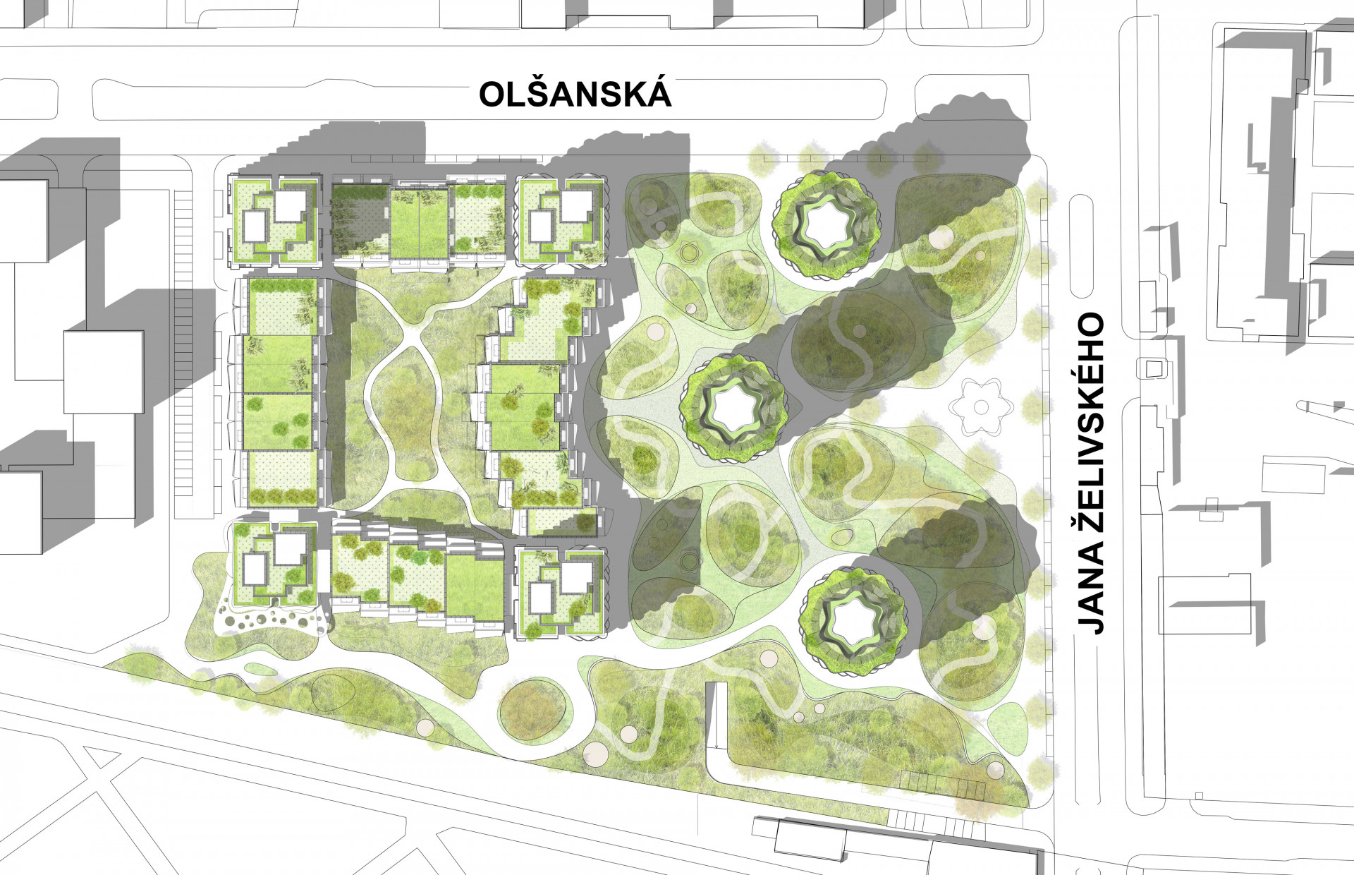 U vítězného návrhu odborná porota ocenila kromě architektury a velmi promyšleného technického řešení také vytvoření velkého veřejného prostoru se zelení. Rozsah veřejného prostoru v návrhu Evy Jiřičné je největší ze všech posuzovaných finálových návrhů. Celkem se zde veřejnosti otevírá téměř 70 procent z celkové velikosti tohoto soukromého pozemku, tedy plocha asi 27 tisíc m2. To odpovídá rozloze tří Staroměstských náměstí.
