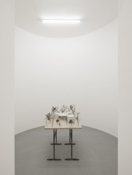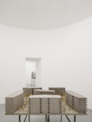 V novém „vnitřním domě“ jsou umístěny velkoformátové architektonické modely vytvořené speciálně pro tuto výstavu. Nejde jen o ukázky projektů – modely jsou samostatnými objekty, které lze obcházet, pozorovat jak zvenčí, tak zevnitř, číst jako návrhy i jako prostory. Přibližují způsob myšlení ateliéru založený na prostorové intuici, nesou atmosféru a materiálovost a v kombinaci s novým výstavním prostorem vytvářejí situace, které mají ambici být samy o sobě architekturou.