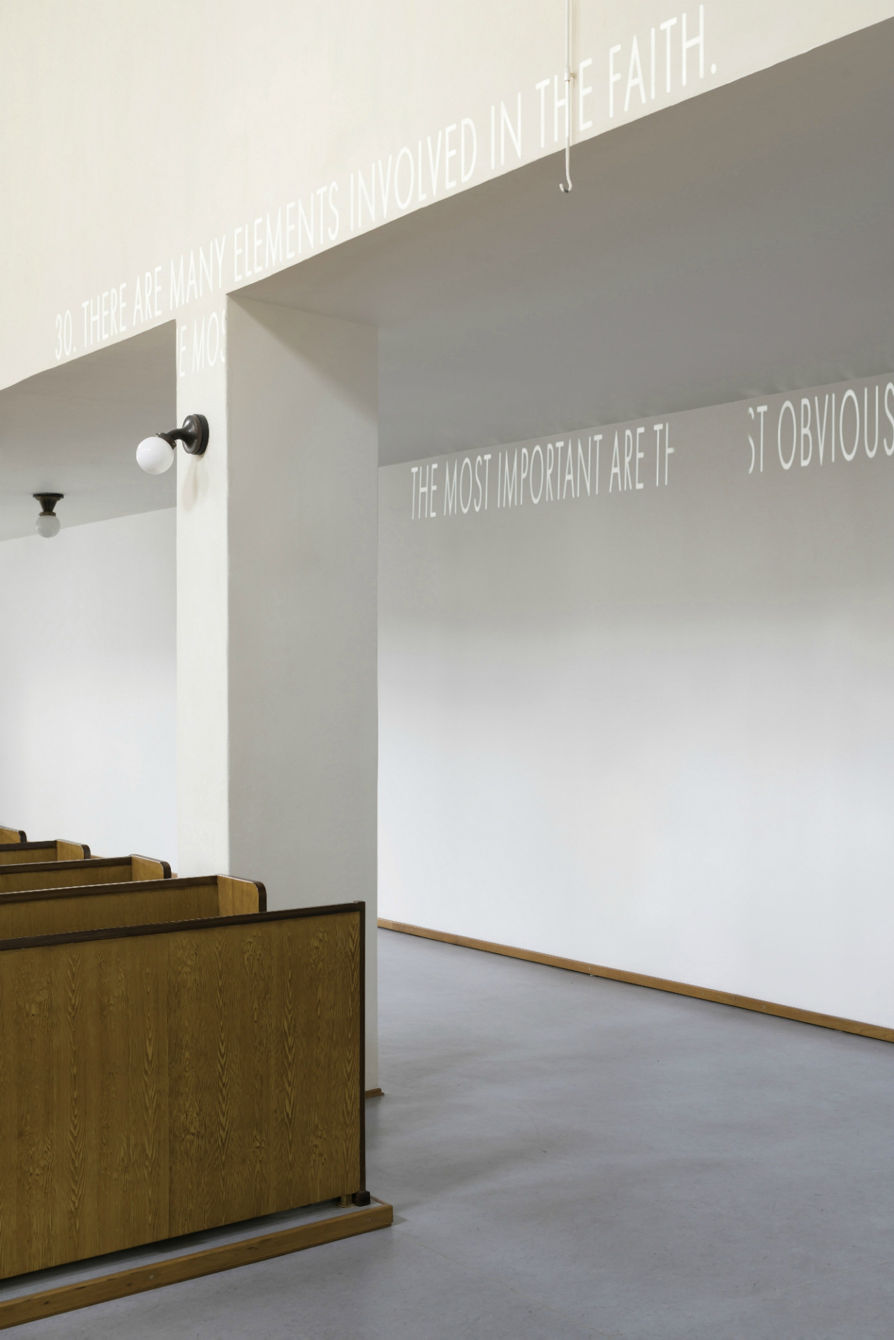 Petr Dub neposouvá věty pouze ve smyslu vizuálním, ale i významovém, když slova „umění“ a „umělec“ zaměňuje v LeWittových větách za slova „víra“ a „věřící“. Myšlenky získávají zcela nový obsahový rámec a v kontextu sakrálního architektonického prostoru se posouvají do obecné roviny společenských, kulturních a spirituálních hodnot současné společnosti a jejich proměny a případného rozkladu.