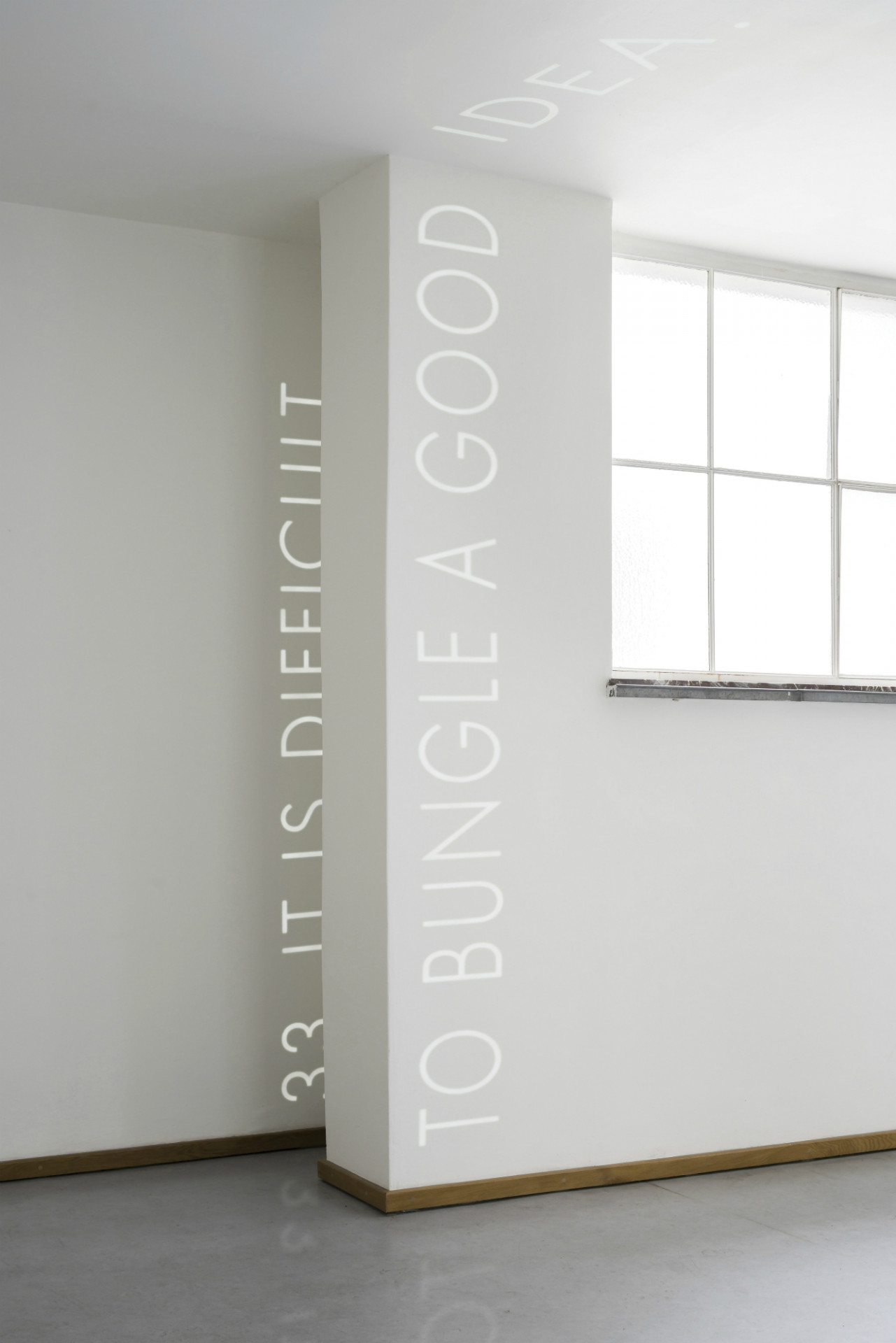 Petr Dub vstupuje do interiéru s respektem ke Gočárově architektuře a ve snaze o vytvoření nových souvislostí. Ve své práci využívá esenciální text o konceptuálním umění – Věty o konceptuálním umění, který na konci šedesátých let formuloval americký minimalistický sochař Sol LeWitt, jehož umění má mimochodem k architektuře velmi blízko. Kromě geometricky konstruovaných objektů a kreseb, navazujících na vídeňskou secesi a radikální redukci tvarů v tvorbě Josefa Hoffmanna a další modernistů, se LeWitt zabývá v teoretických úvahách i významem konceptuálního umění. Sám návazně patří ke generaci, definujícího význam konceptualismu pro druhou polovinu 20. století.
