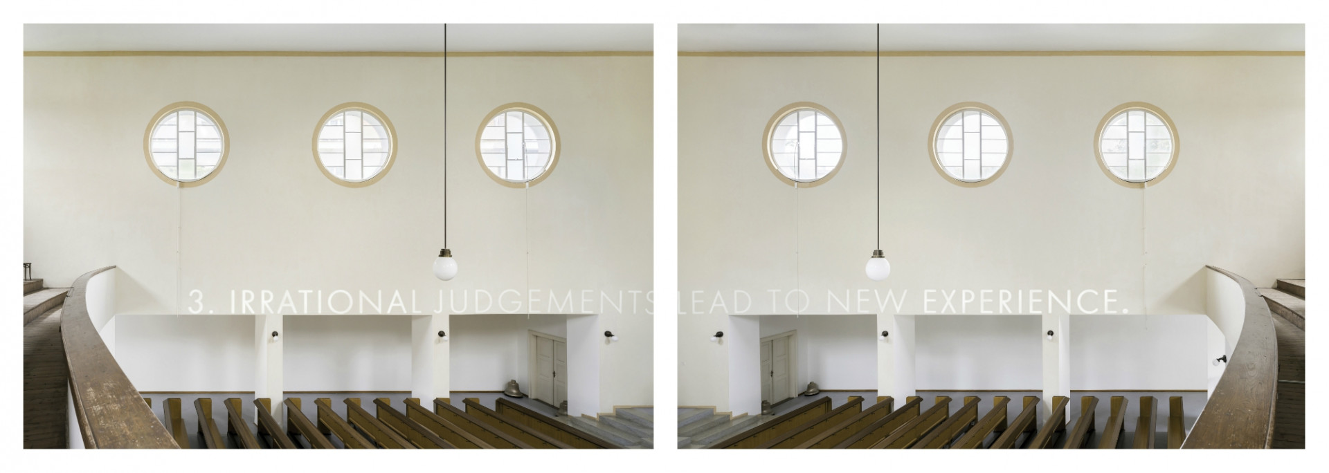 LeWittovy racionální i spekulativní výklady konceptuálního umění promítá Dub do struktur přísné modernistické architektury a zachycuje tak dogmata výtvarného umění minulého století v dnes již stejně dogmaticky chápané architektuře. Autor se záměrně vyhnul pokusu věty aplikovat do fyzické architektury. Na projektu proto spolupracuje se svým kolegou, fotografem Zdeňkem Porcalem, který interiér kostela více než dokonale fotograficky zachycuje, aby vzniklý materiál v postprodukci návazně upravil Pavel Vinter, profesně zběhlý v architektonických vizualizacích. Vzniká tak řetězec významových i vizuálních vrstev bez toho, aniž by se věty skutečně v architektuře objevily. V myšlenkové rovině se jedná o různé výseče reality, jakési profesní iluze, se kterou si autor záměrně pohrává v následnosti skutečná architektura – slovo – vizualizace – reprodukce a postprodukce. V tomto smyslu se nabízí paralela k samotnému avantgardnímu umění, ve kterém přetrvává víra ve vlastní nedotknutelnost, zachovávající současně právo na zpochybňování veškerých společenských úmluv. Autor se odvolává na použití současných architektonických nákresů a vizualizací, které jsou obecně chápány jako způsob zobrazení „reality,“ zároveň jí však vyjadřují jen částečně a v mnoha případech zcela nepřesně či záměrně zavádějícím způsobem.