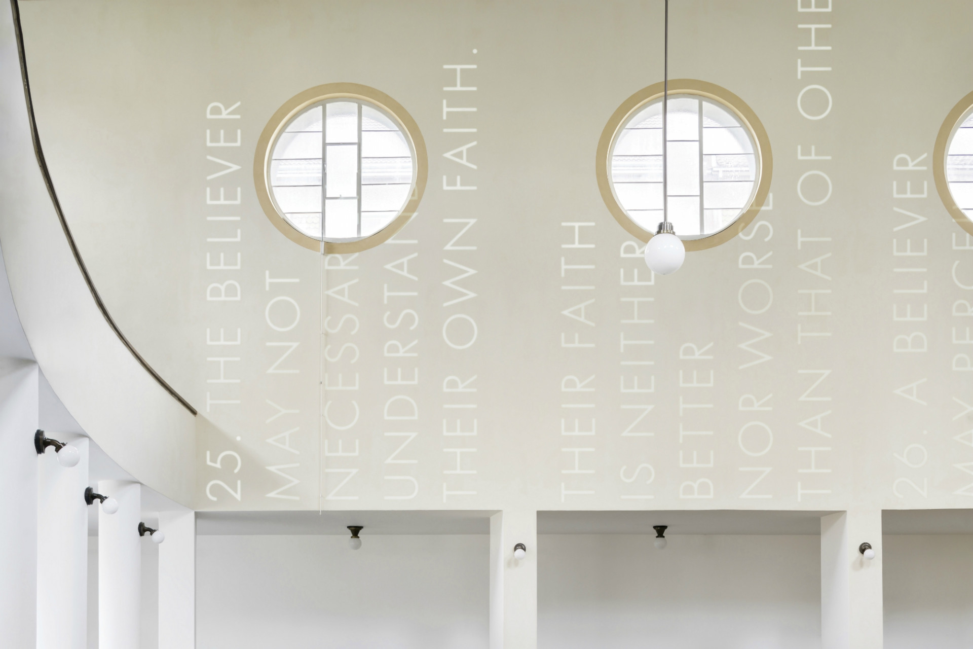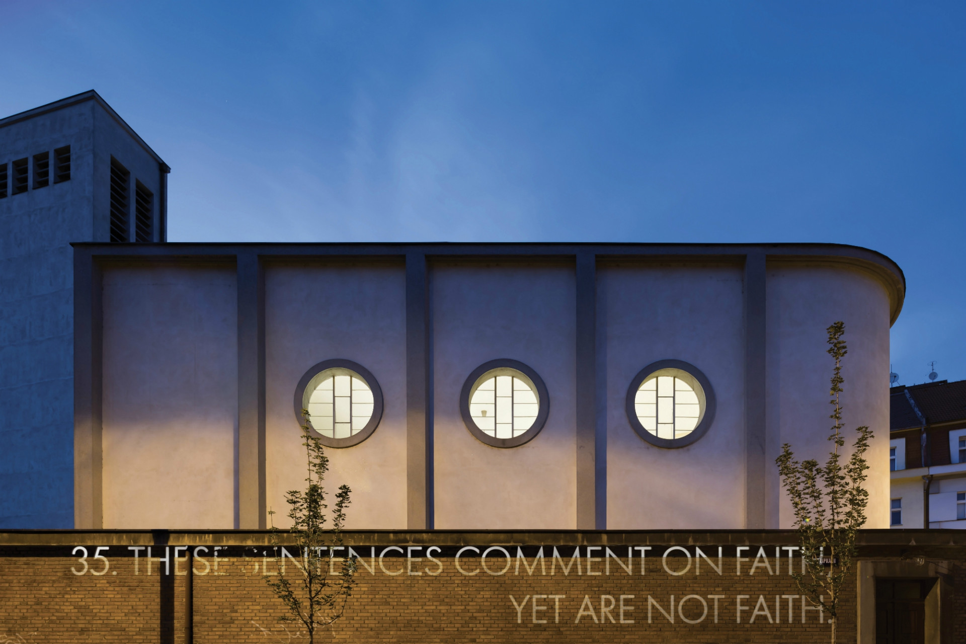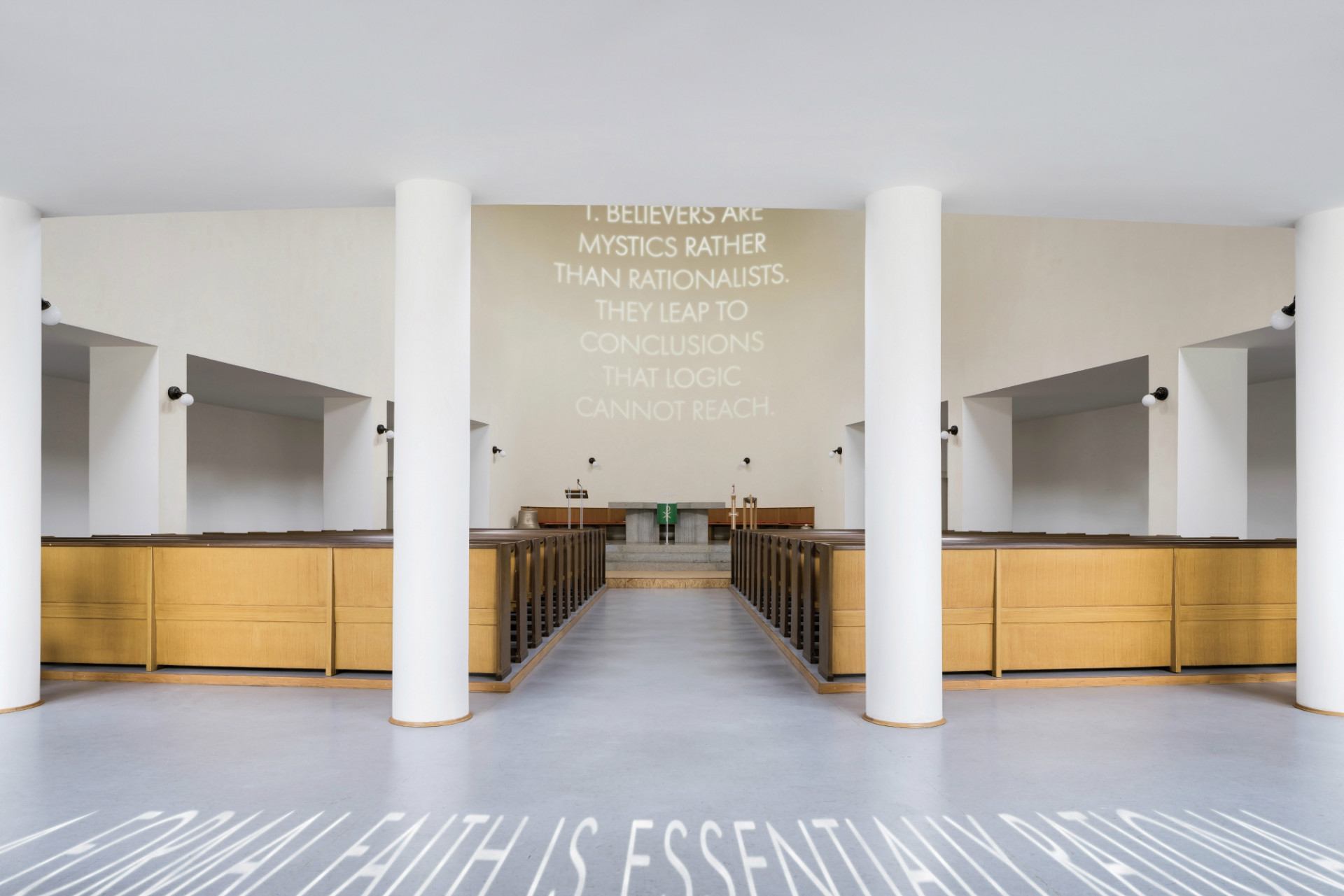 Podobnou strategii zaujal v projektu Věty po konceptuálním umění, který vytvořil pro interiér Sboru kněze Ambrože Církve československé husitské v Hradci Králové. Jedná se o specifickou sakrální stavbu, navrženou architektem Josefem Gočárem, která byla postavena v letech 1926-1929 v asketickém duchu nastupujícího modernismu. Tato architektura ukazuje Gočárův vývoj směrem od strukturované a cihlové individualistické moderny k jasným a ostrým úhlům a plochám funkcionalismu. Chrám je součástí většího souboru, postaveného na půdorysu nepravidelného trojúhelníku a obklopeného budovami diecéze, fary a kolumbária. V samotném cípu se nachází kostel, který svou zužující se lodí a kruhovými okny symbolicky připomíná loď.