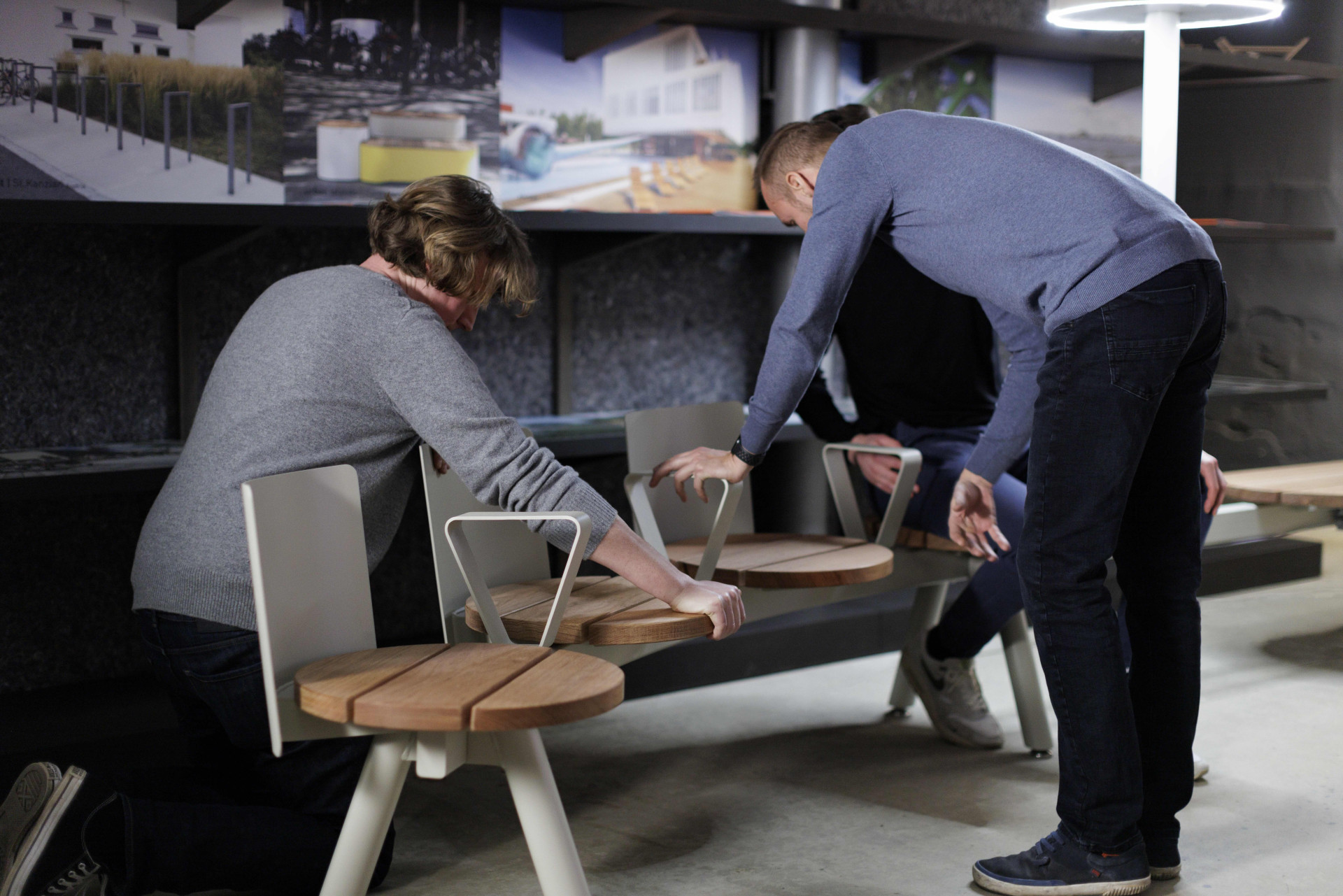 „Tento tok a pohyb jsme chtěli přetavit do kolekce sedacího nábytku Morse. Profil, ze kterého vzniká, se skládá z rovných a ohýbaných prvků, ty nám dávají volnost při tvorbě lavičky jakéhokoli tvaru. I díky tomu se sestava hodí nejen do veřejného prostoru v exteriéru, ale může být použita také v interiérech“, dodává Tom Fonteyn, spoluautor produktu ze Studia Segers.