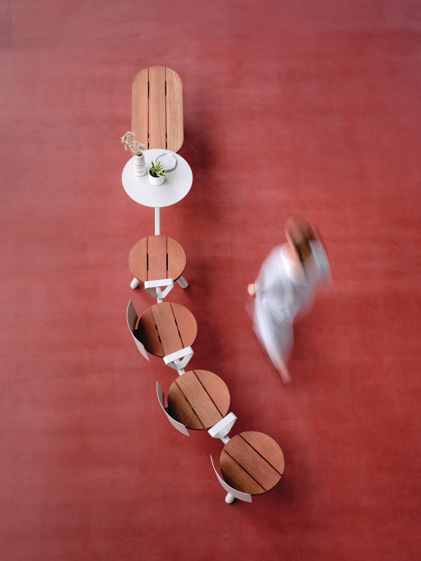 Ano, je to multifunkční objekt do jakéhokoli prostoru – veřejný park, polo veřejná zahrada, nádraží či galerie. Dokončení produktu může být v různých barvách a materiálech. Také přichází se sérií doplňků, integrovaným stolkem, opěrkou, područkami, s možností nabíjení přes USB a s osvětlením. Toto příslušenství lze – stejně jako sedadla – umístit na kovový profil. Modulární systém sedacích prvků se snadno přizpůsobí jakémukoli prostředí.
