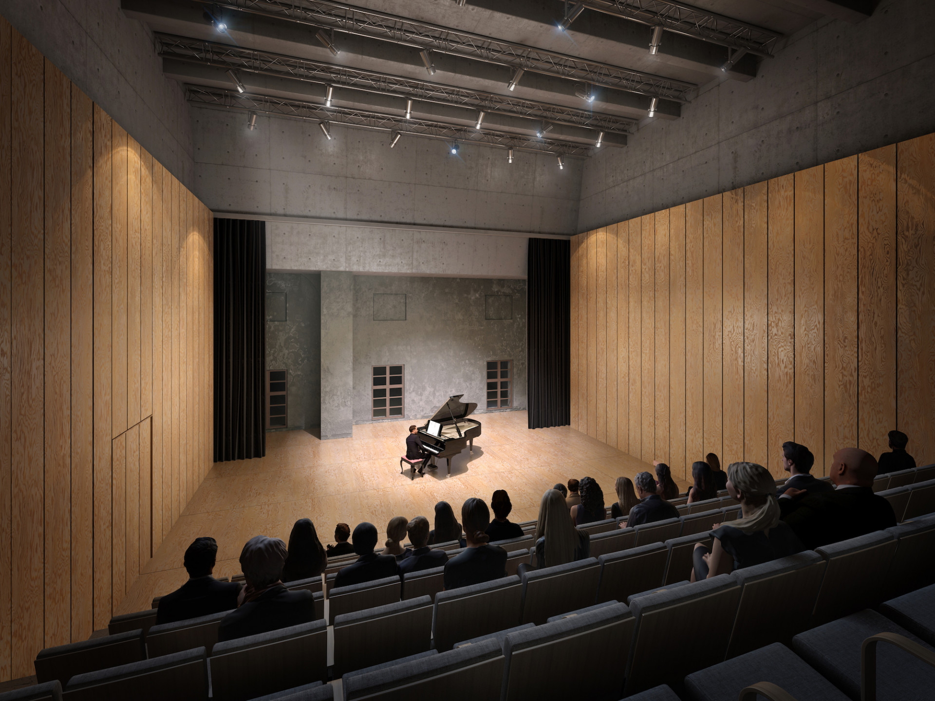 „Vnější tvar dostaveb je výsledkem regulace základního objemu s ohledem na archeologické nálezy, požadavky památkové péče a limity statiky a akustiky. Dostavby mají fasádu z profilovaného skla, která při podvečerním osvětlení dodává místu důstojnou a slavnostní atmosféru,“ doplnil Petr Hájek, autor architektonického návrhu.