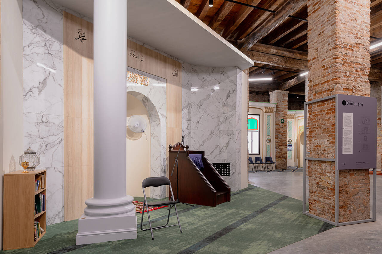 Ve Spojeném království je 1800 mešit a navštěvuje je 3,4 milionů muslimů. Publicista a architekt Shaheda Shaleema je prozkoumal – jsou to často „svépomocí navržené a také postavené budovy“, někdy využívají opuštěné domy, tělocvičny, hospody. Sleduje jejich ad hoc architekturu a také, jak do nich pronikají architektonické inovace – na ukázku je tu část minaretu z perforované nerez oceli. Výstavu připravil ve spolupráci s kurátory z Victoria & Albert Musea a použili pozoruhodnou metodu rekonstrukce – jsou tady do detailu napodobené části tří londýnských mešit. Včetně plastového větráku.