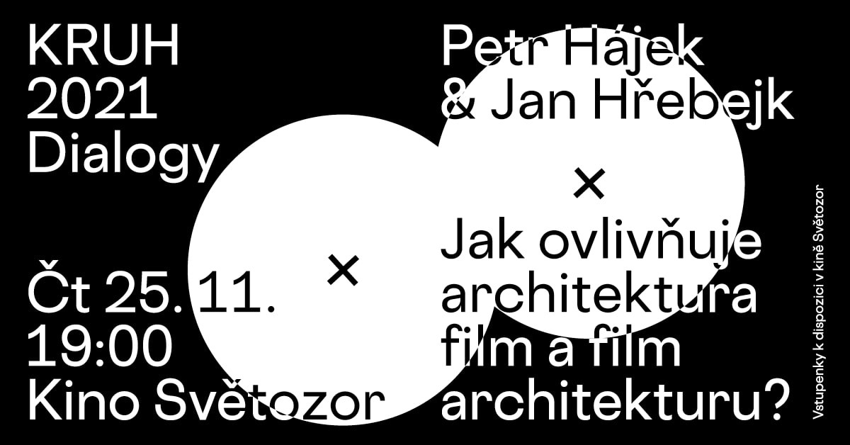 Na listopadové přednášce spolku Kruh se protnou dva obory: film a architektura. V rámci cyklu Dialogy vystoupí architekt Petr Hájek a známý filmový režisér Jan Hřebejk. Nad společnou prezentací budou diskutovat o mezioborové spolupráci a inspiraci, ale i o recyklaci materiálů a prvků a to jak v architektuře, tak ve filmu. Přednáška na téma „Jak ovlivňuje architektura film a film architekturu?“ se uskuteční ve čtvrtek 25. listopadu v kině Světozor v Praze.