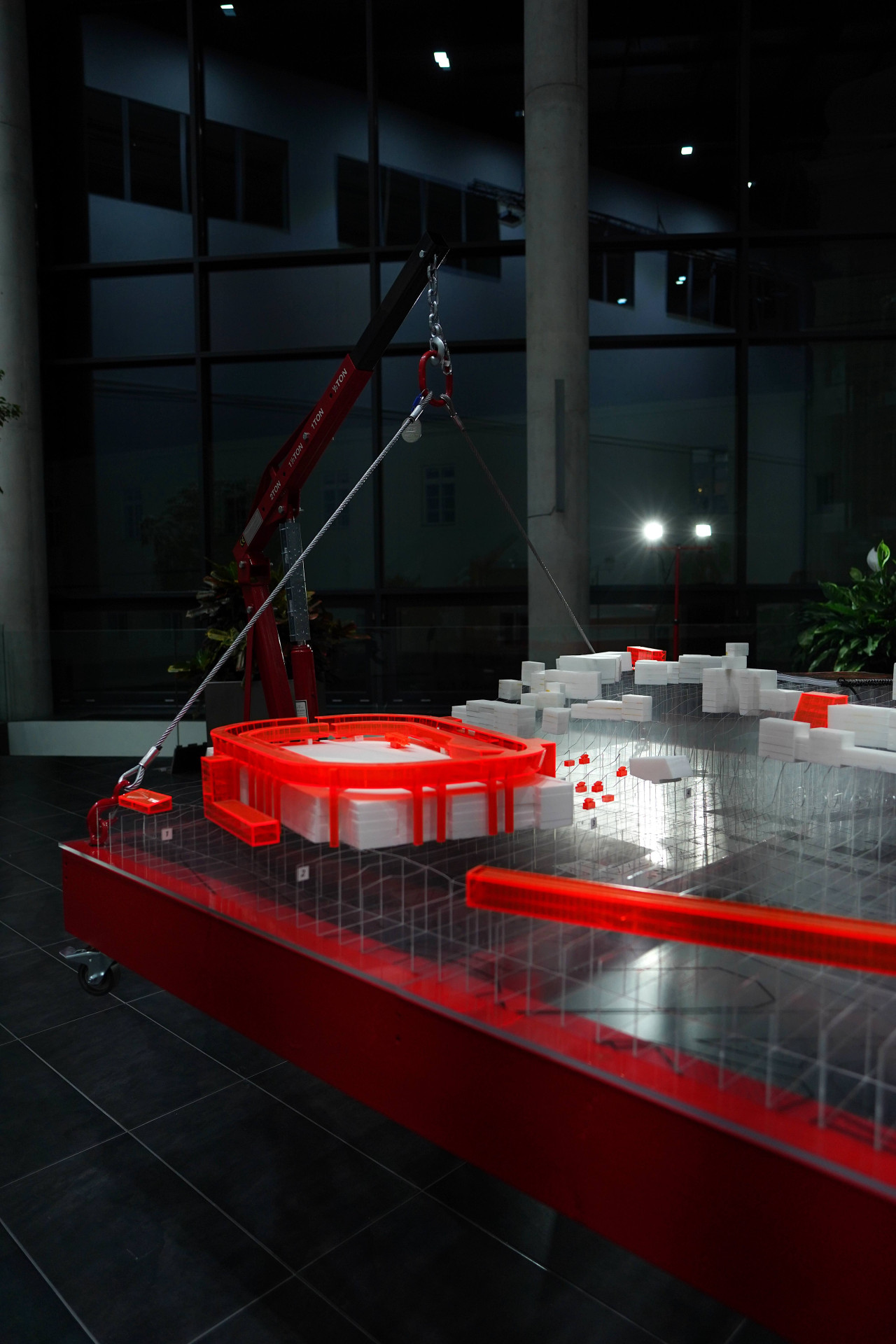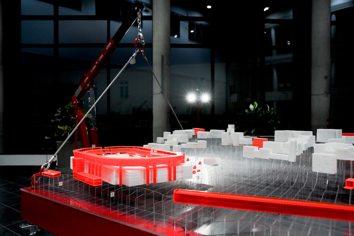 Centrálním prvkem výstavy je multimediální instalace, která znázorňuje citlivé propojení území města a automobilky Škoda Auto. Instalaci tvoří dva dílenské jeřáby, které nesou dřevěnou rámovou konstrukci s urbanistickým modelem s terénem z plexiskla a stávajícími budovami z polystyrenu. Návrhy studentů jsou do situačního modelu vložené a jasně rozpoznatelné: tvoří je objekty z oranžového plexiskla. Jednotlivé projekty jsou pak spolu s komentářem promítány na stěnu za ústřední instalací. Práce vznikaly jako společný projekt Fakulty architektury ČVUT v Praze a Nadačního fondu Škoda Auto za podpory Škoda Auto Vysoké školy, statutárního města Mladá Boleslav a nadačního fondu Art-Now.