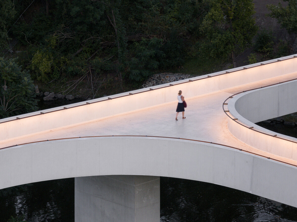 Minimalistickou formu umožnilo použití ultravysokopevnostního betonu UHPC – i to ocenila porota, podle níž „esetický záměr vedl k technologické inovaci“.