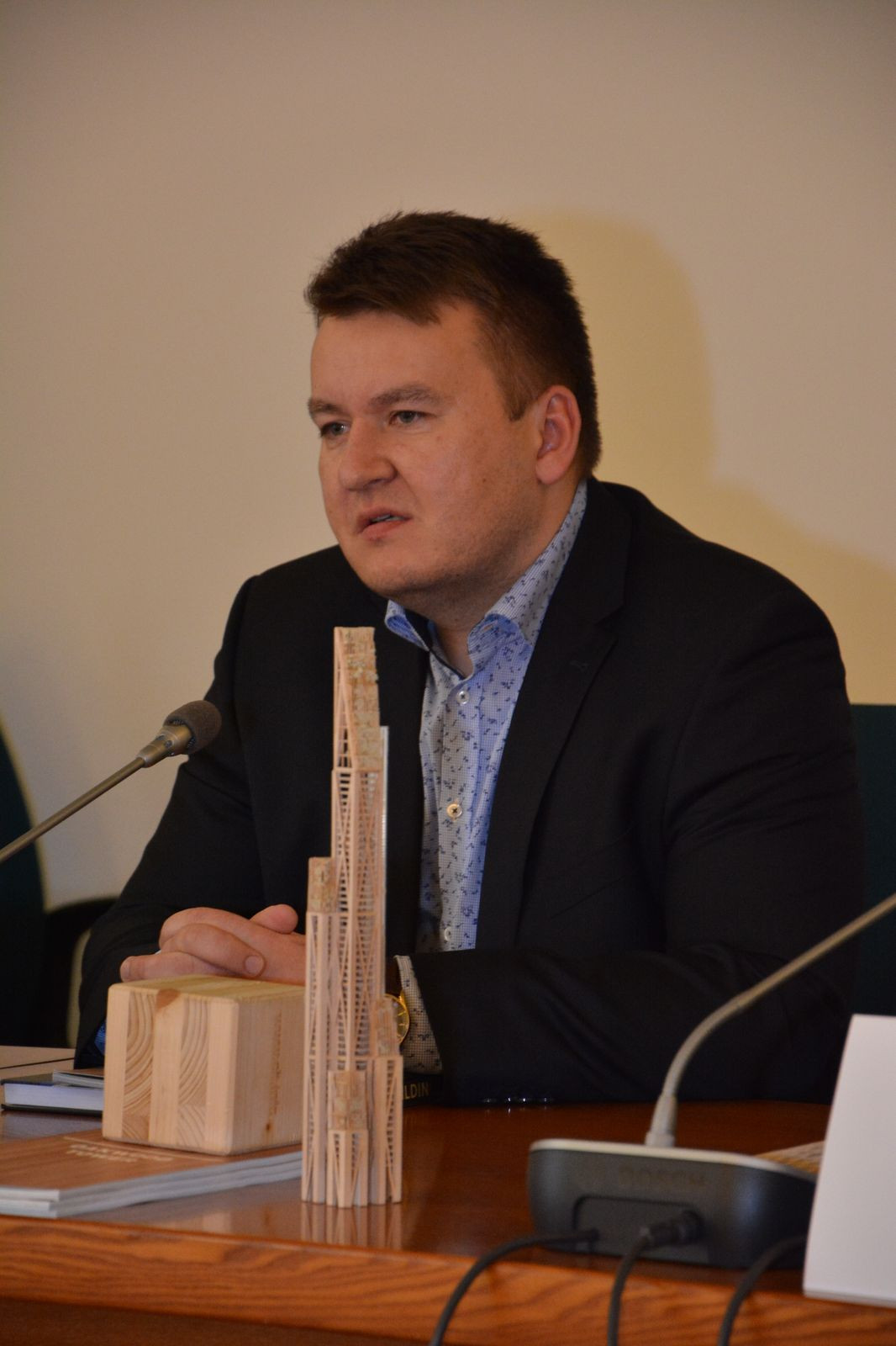 Člen královského architektonického institutu má se dřevem rozhodně velké plány. Při přednášce konané na Ministerstvu zemědělství přesvědčoval o budoucnosti využívání tohoto materiálu a spoustu lidí pravděpodobně i přesvědčil.