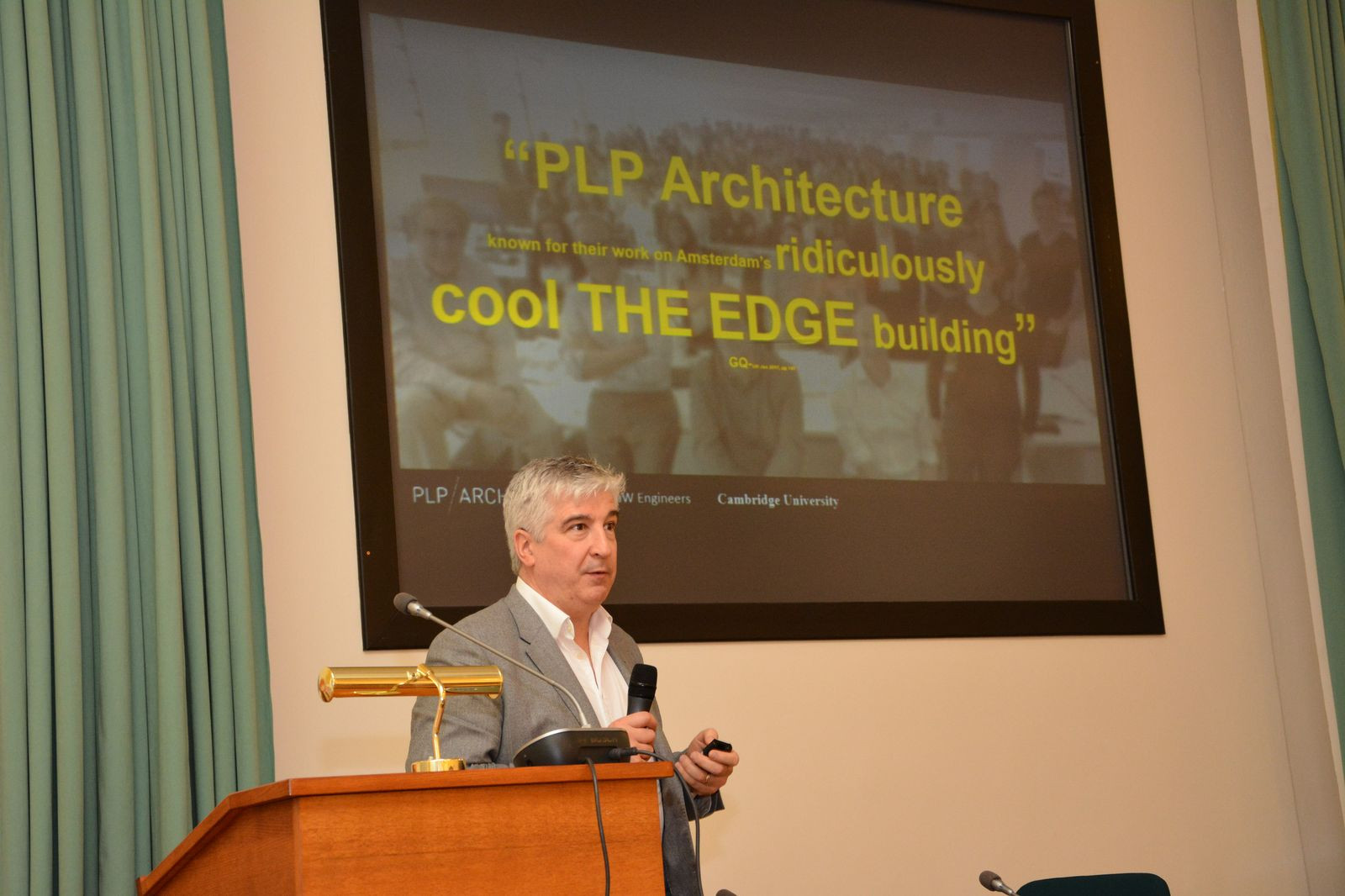 V úvodu představil sebe a svou kancelář – PLP Architects – a všechny do jejich otevřené kanceláře pozval. Jejich práce by prý neměla smysl bez diskutování a debatování s lidmi, což je také důvod, proč do Česka přijel.