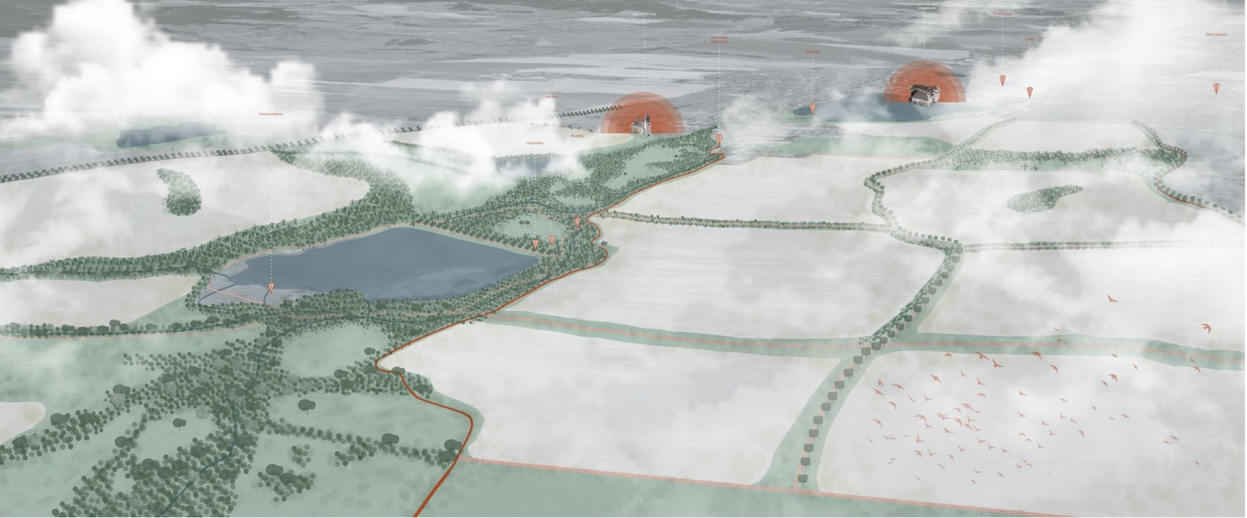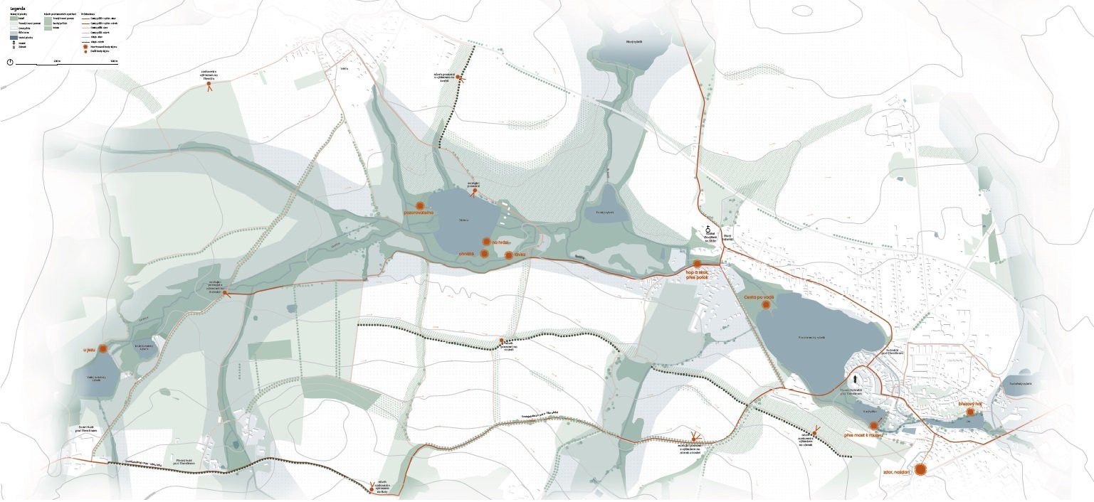 V Rožmitálu pod Třemšínem pro nás byla od první chvíle tématem voda. Není proto divu, že jsme si jako zadání vybraly právě rybniční soustavu, která protkává katastrální území napříč. Chceme přiblížit lidi k vodě, vodu k lidem. S návrhem jednotlivých minimálních zásahů souvisela i nová cestní síť, na kterou jsme navázaly protierozní opatření, která by na orné půdě dokázala vodu zdržet.