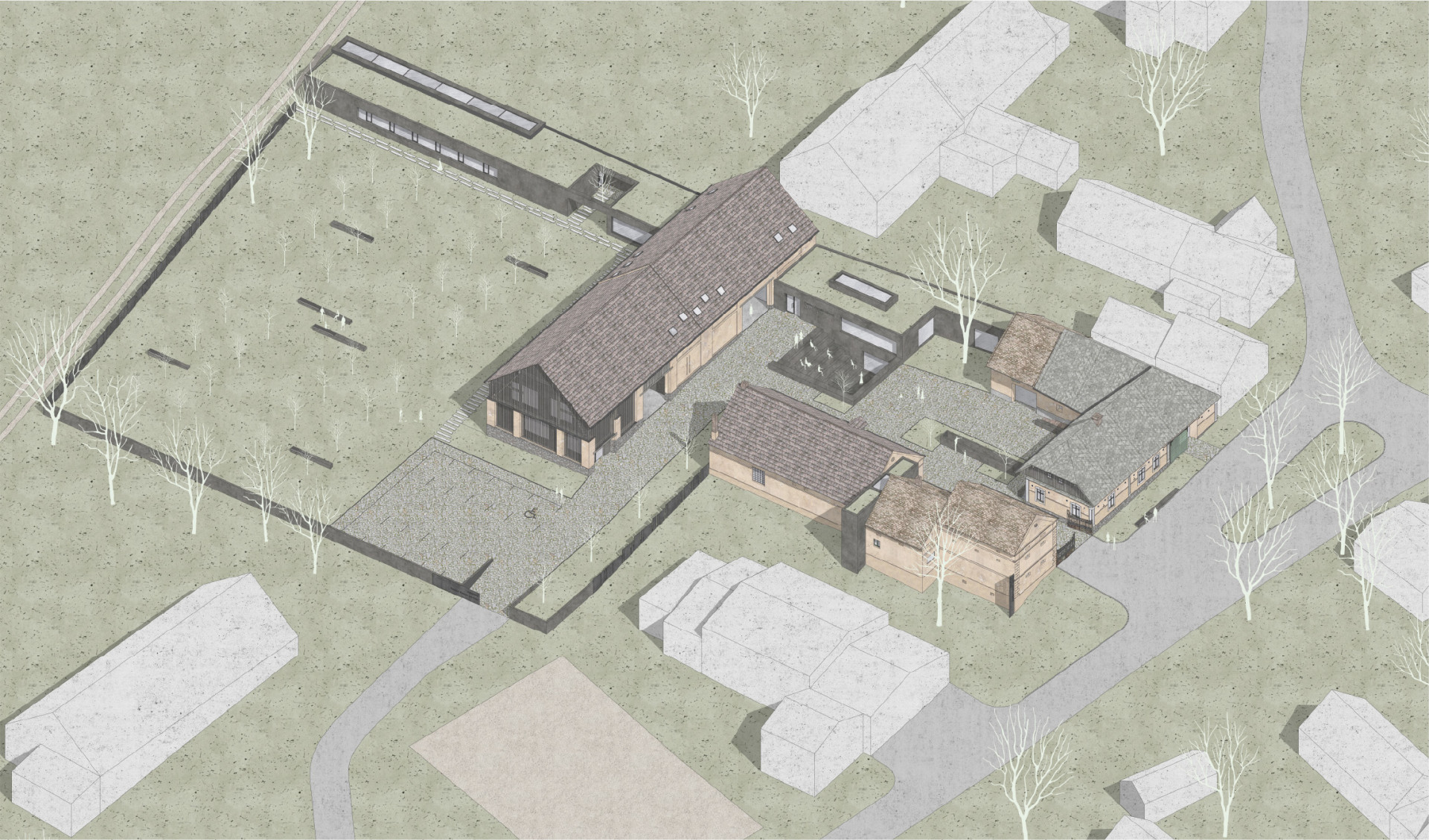Diplomní práce se zabývá řešením Institutu Paměti národa pro Plzeňský kraj umístěný do venkovské usedlosti v obci Úboč na Domažlicku, která byla jedním z mnoha statků postižených perzekucemi v 50. letech 20. století. Návrh využívá stávající objekty a doplňuje je o podzemní i nadzemními objekty koncipované do jednoduché formy, které propojují stavby do jednoho celku. Dochází ke konverzi jednotlivých stávajících staveb, ale zároveň zůstává zachován autentický vzhled objektů bez výrazných vnějších zásahů, jako nositel paměti místa. Součástí návrhu je audiovizuální expozice Institutu Paměti národa a prostory pro vzdělávání.