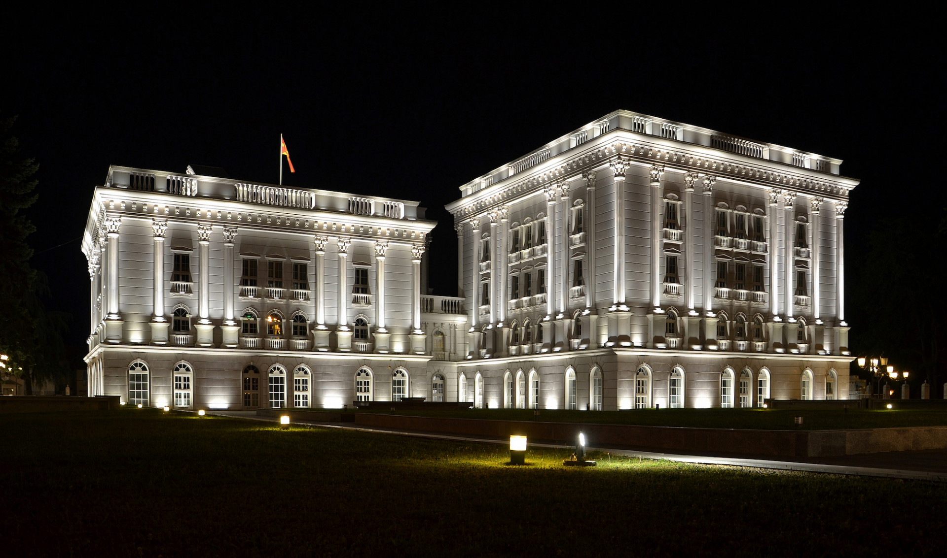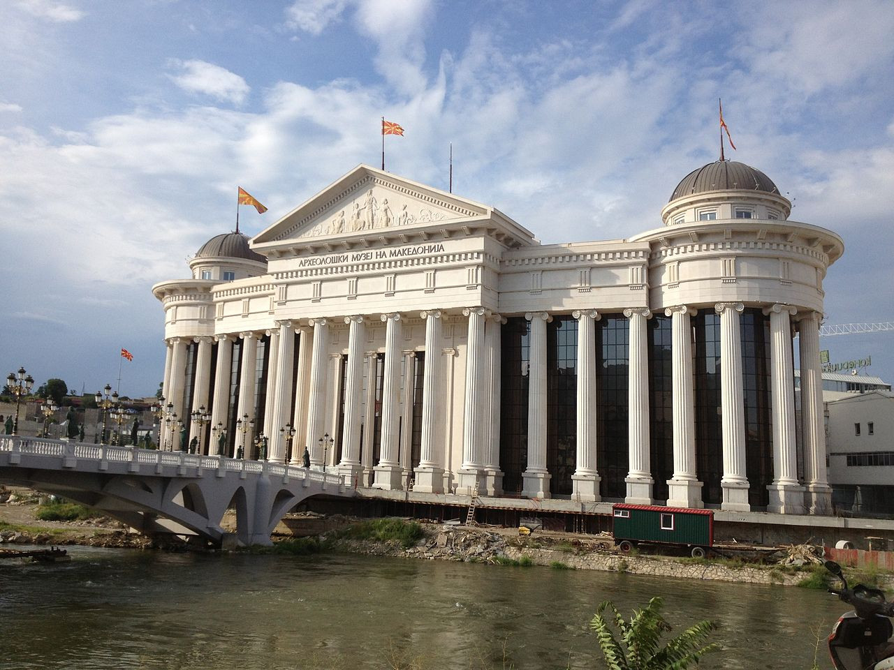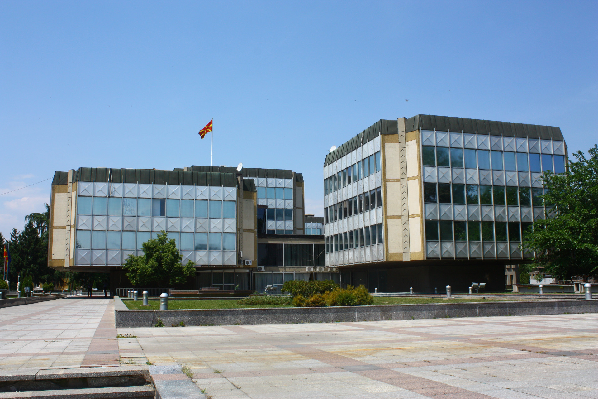 Ze staveb realizovaných v rámci obnovy centra Skopje svému původnímu účelu (a navíc v téměř nezměněné podobě) slouží prakticky už jen hlavní pošta a Muzeum současného umění. Téměř všechny další budovy totiž zcela „překryl“ projekt Skopje 2014, obří iniciativa bývalého premiéra Severní Makedonie Nikoly Gruevskiho, který v projektu zmaterializoval svoji nacionální identitární politiku. Za jeho vlády se z proevropské Makedonie stala proruská a protizápadní země. Kvůli mnoha problematickým okolnostem nelze o projektu mluvit jako o rekonstrukci města, ale o spontánní a megalomanské výstavbě v historizujícím stylu, která politicky využívá odkaz smyšleného dědictví Alexandra Makedonského.