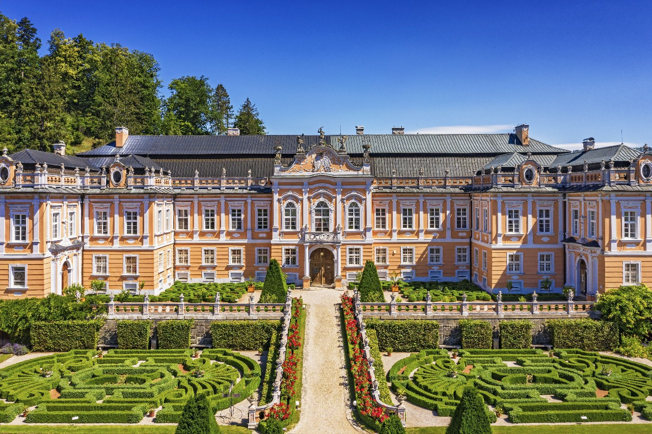 Holčičí sedánky patří mezi oblíbené aktivity všech Barbie. Zámek v Nových Hradech by jako kulisa pro čaj o páté fingoval skvěle. (Zámek Nové Hrady, Josef Jäger, 1774-1777)