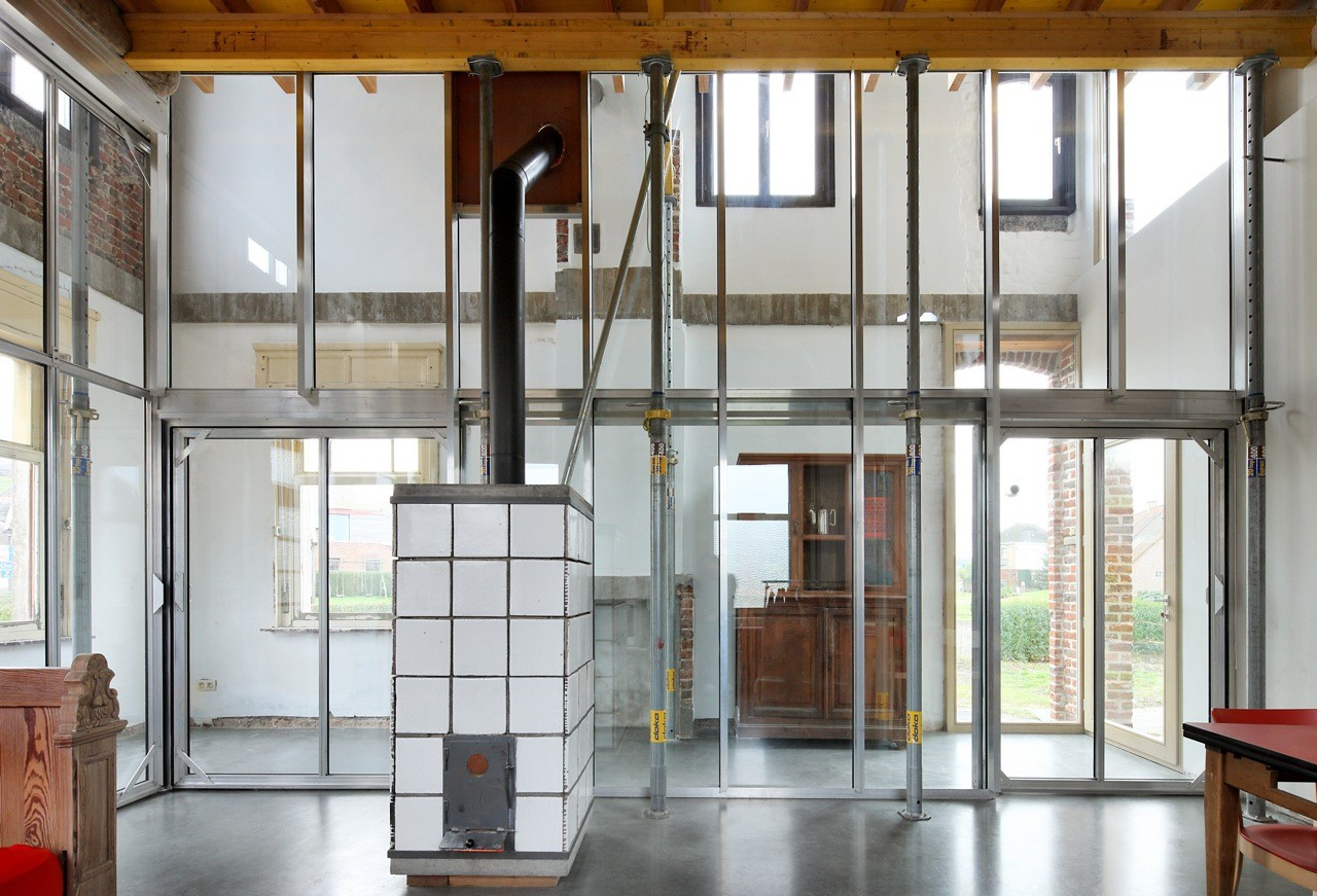 Odstraněním podlah v původním domě Rot Ellen Berg v malé hornaté vlámské vesnici architekti prosvětlili celý vysoký prostor shora. Projevila se zde i jejich záliba v lešení - do původní obvodové slupky domu umístili jen lehkou konstrukci podpíranou trubkami, která se podobá domečku ze stavebnice Merkur. Vnitřní objem obalený sklem funguje v zajímavém dialogu s vnějším pláštěm. Zároveň zmenšuje vytápěnou plochu a tím snižuje jeho energetickou náročnost.