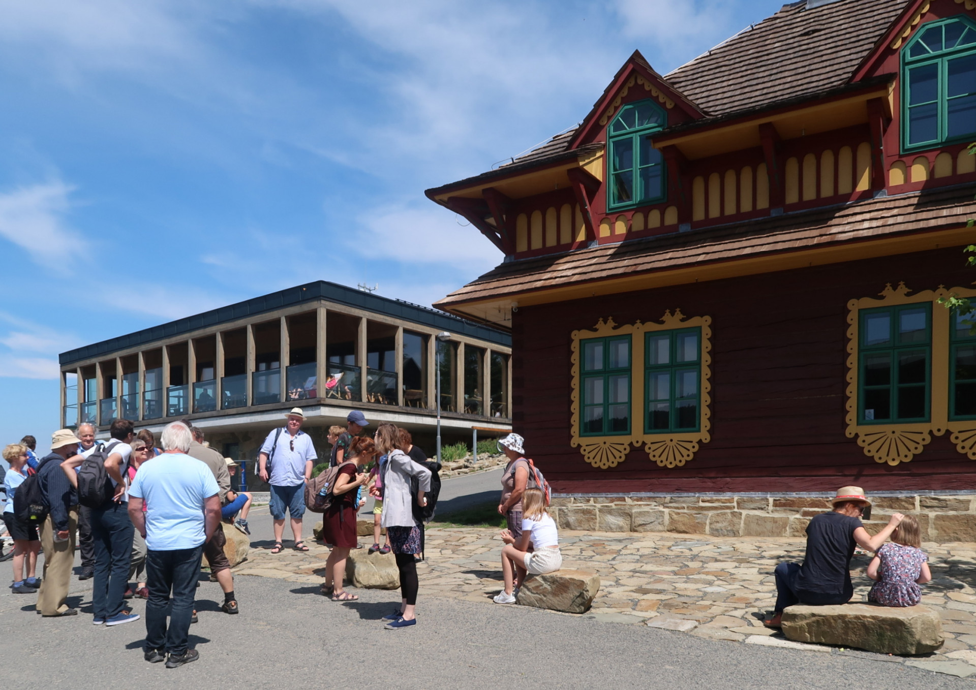 Výstupní stanice lanovky a restaurace na Pustevnách v Beskydech (Kamil Mrva, Václav Kocián, spolupráce Jan Stuchlík a Martin Vymetálek)