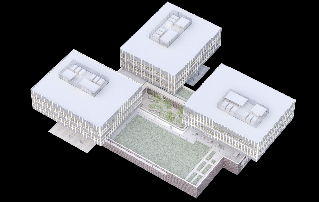 Studie rekonstrukce od studia IXA. Měla by dotáhnout některé původní vize, například přístupnou střešní terasu mezi kostkami A a B či restauraci. Prostory pro veřejnost by se měly rozšířit do podnoží všech objektů.