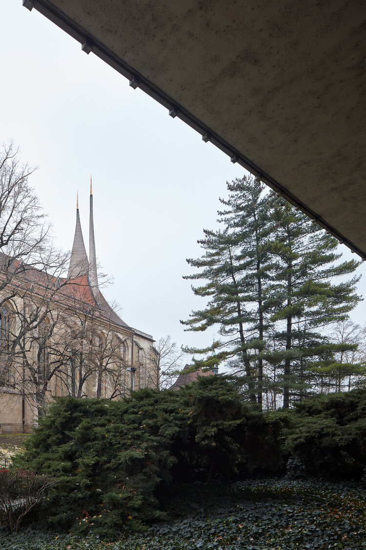 Kotelna na lehké topné oleje. Ve sklepě budovy B se skrývá ještě jedna zajímavost - sklepy původního pivovaru, na nichž byla moderní stavba založena tak, aby se nepoškodily.
