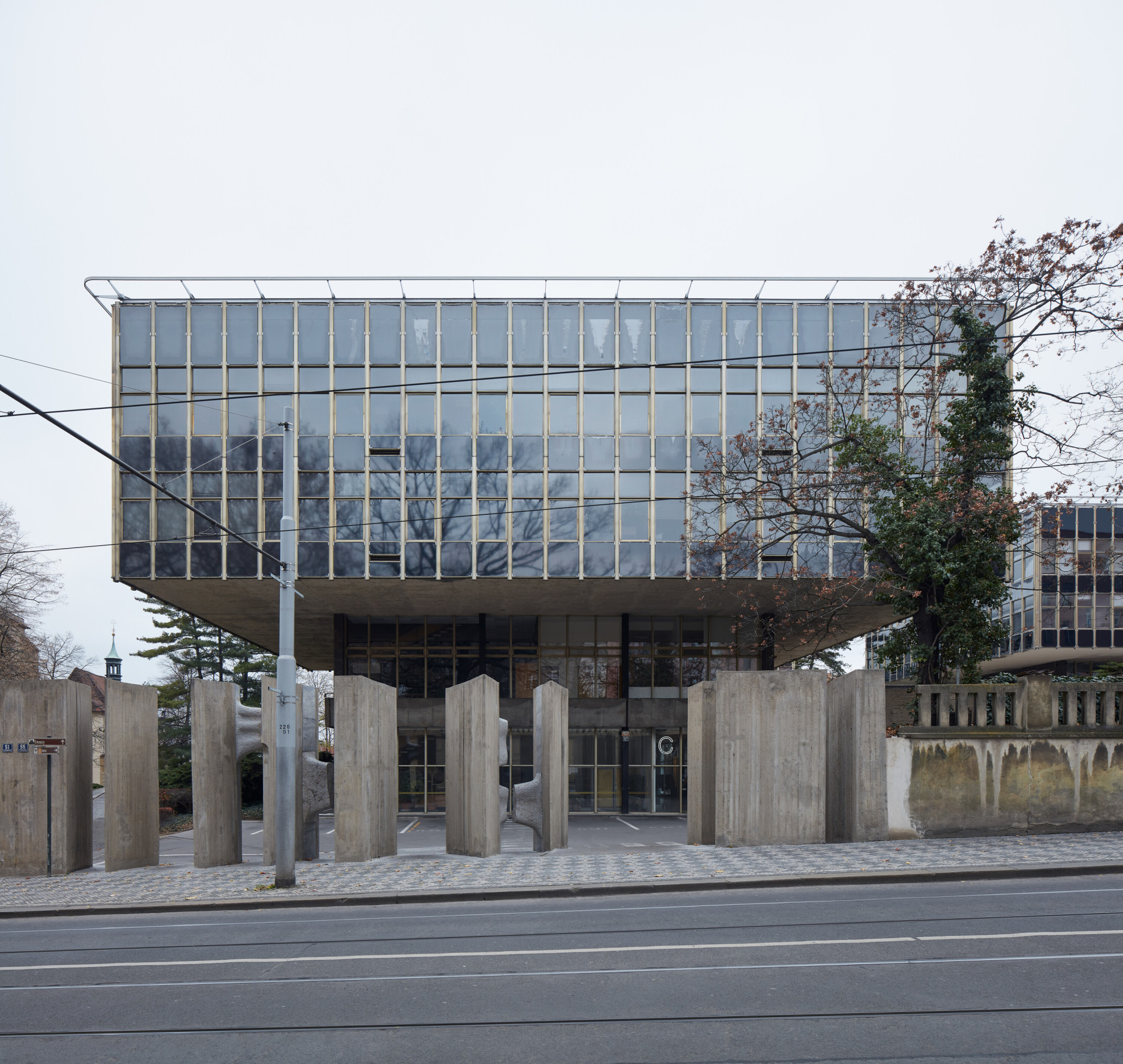Skutečným unikátem je však konstrukční systém. Budovy mají formu „superstruktury, kdy jsou na střední podnož, která probíhá až do úrovně střechy, zavěšena dvě přesahující patra,“ uvádí se ve stavebně historickém průzkumu.