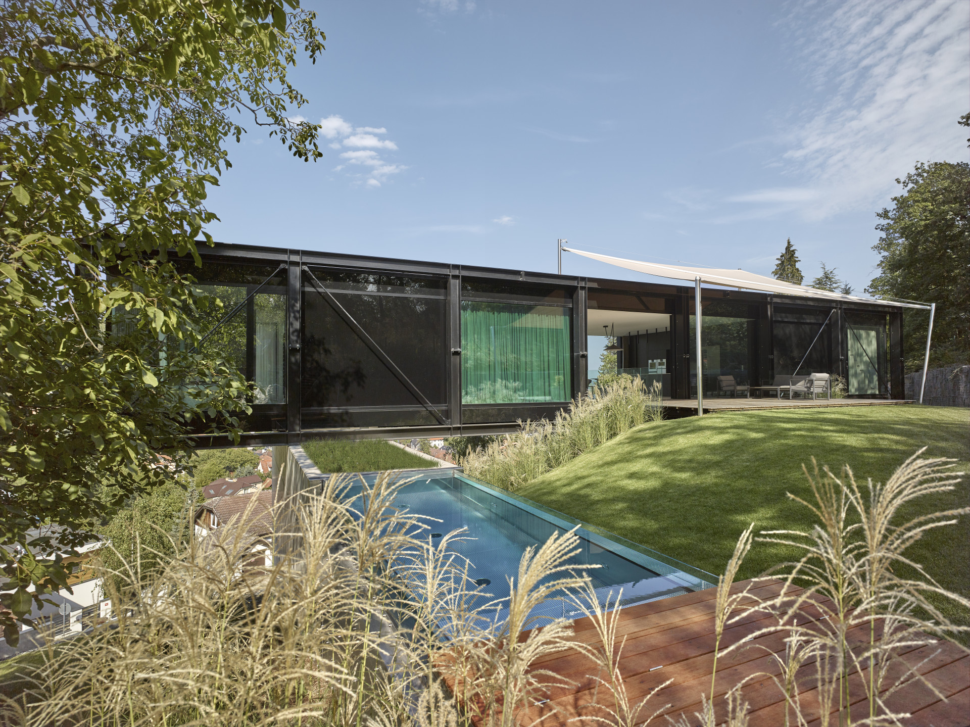 Další ocenění dostala Vila Sidonius (2023) v Černošicích, která budí pozornost každého, kdo projíždí touhle obcí s převážně historickou výstavbou. Nelze totiž přehlédnout stavbu ze skla a oceli, která z dálky trochu připomíná most.