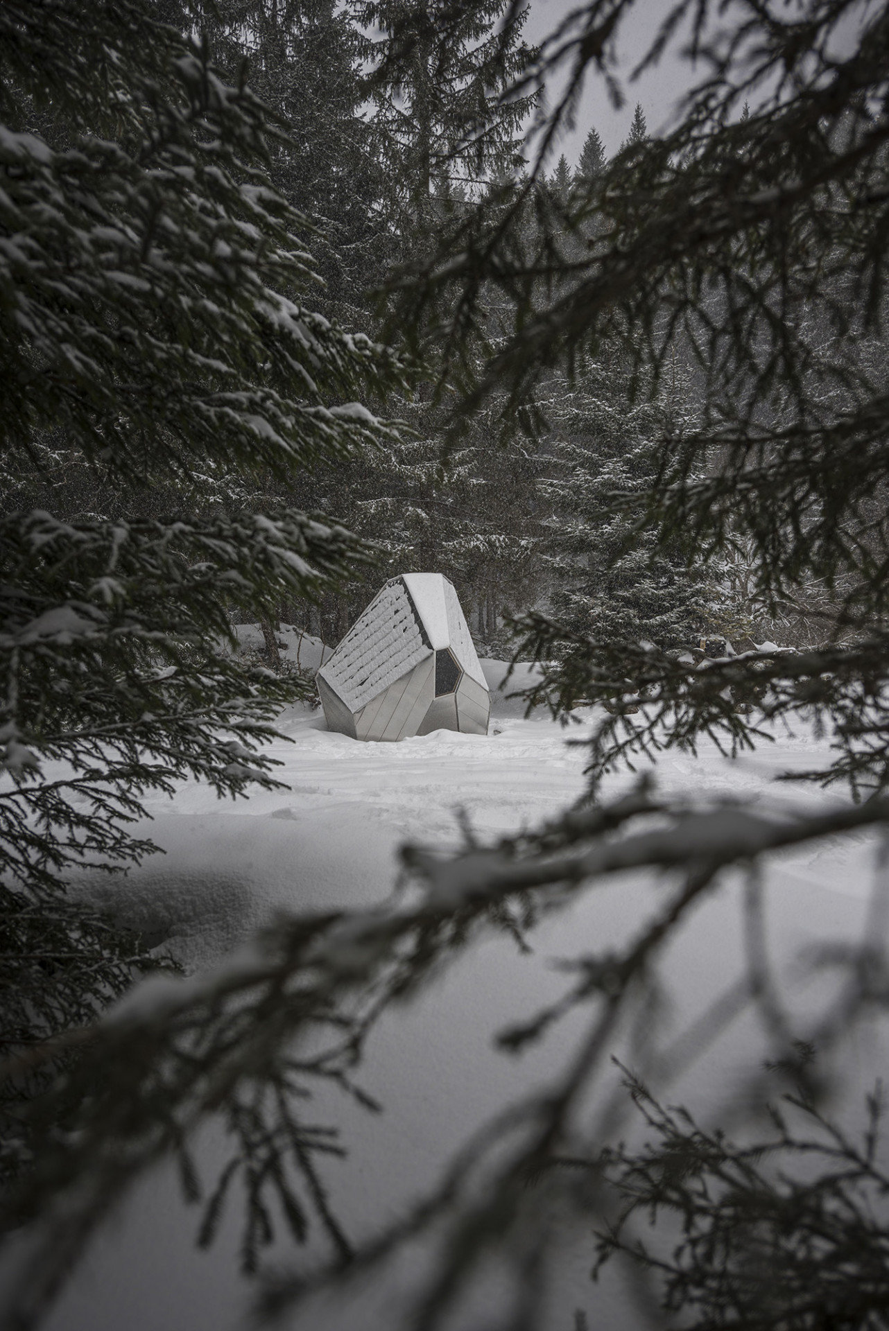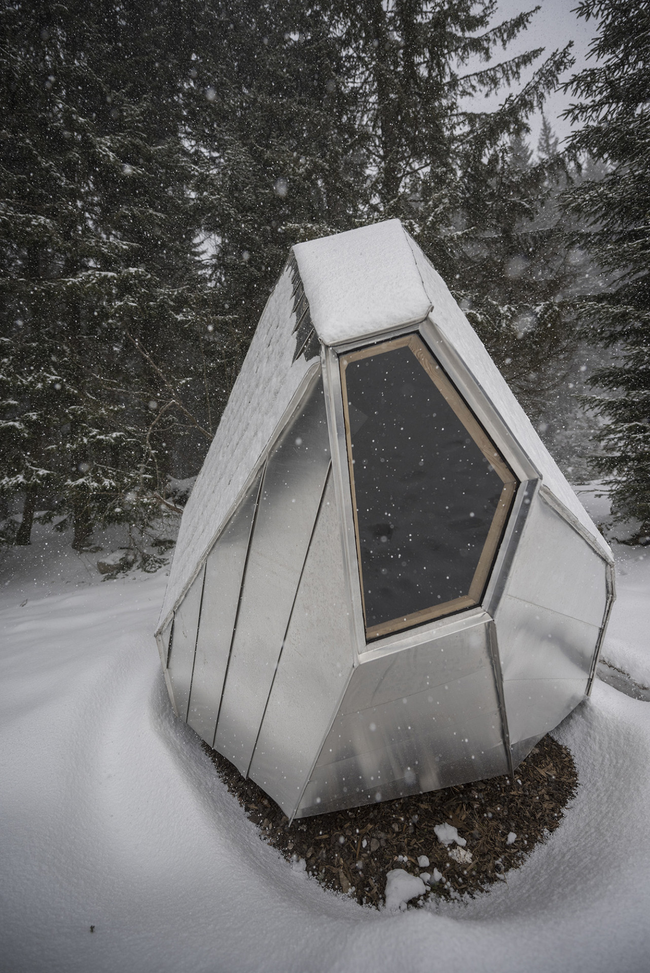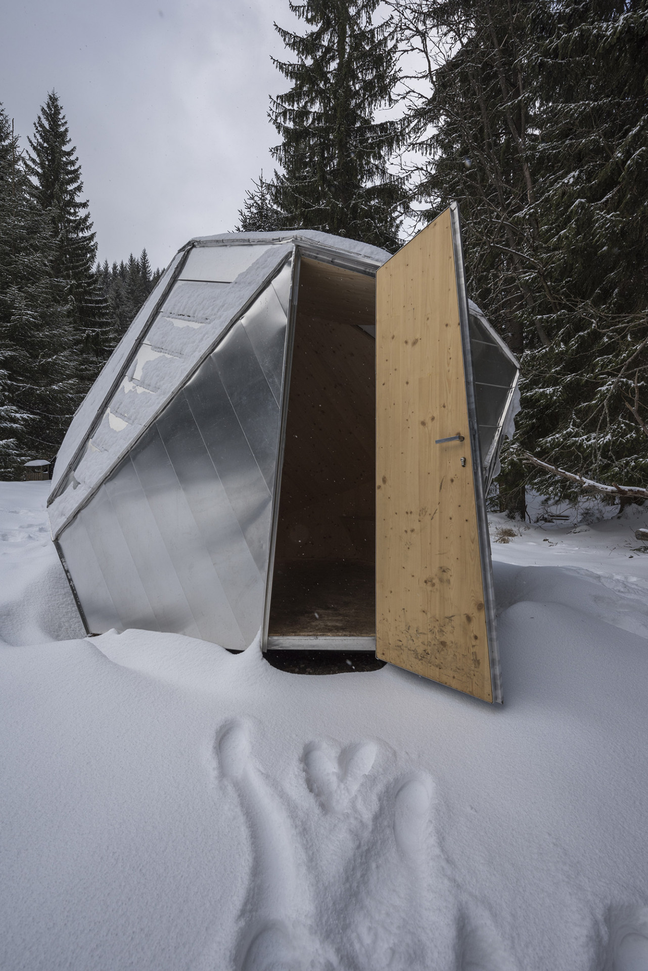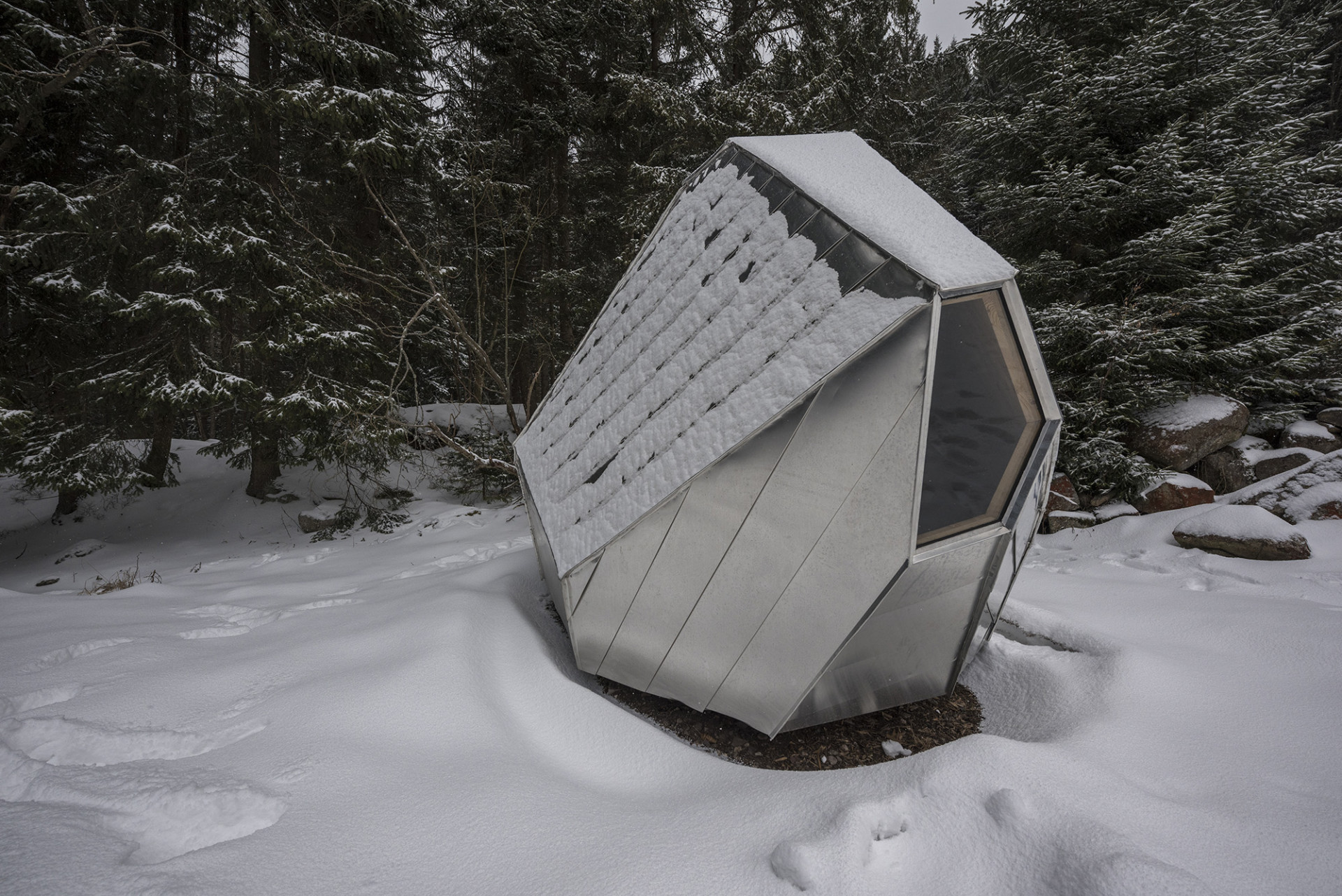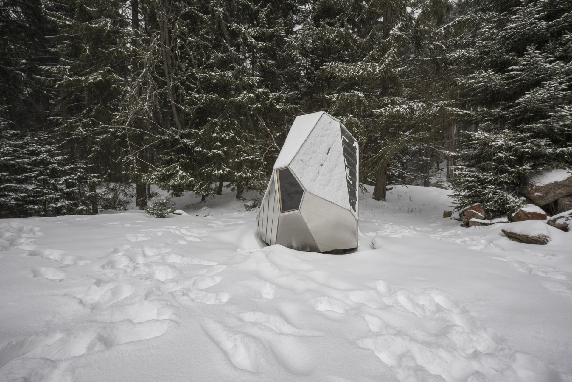 Jedná se o jednoduchý přístřešek, který slouží v Krkonoších jako útočiště pro turisty před nepřízní počasí. Inspirací pro tvar bylo umístění nedaleko Balvanového vodopádu na Bílém Labi, do kterého byl ještě nedávno vklíněn velký kámen. Nepravidelná, ale kompaktní struktura útulny vytváří pocit bezpečí a úkrytu, světlé dřevo v interiéru kontrastuje s plechovým opláštěním a vytváří příjemný pocit i v případě špatného počasí. Studenti stavbu realizovali za pomoci společnosti Prefa, která jim poskytla zázemí a klempířské know-how.