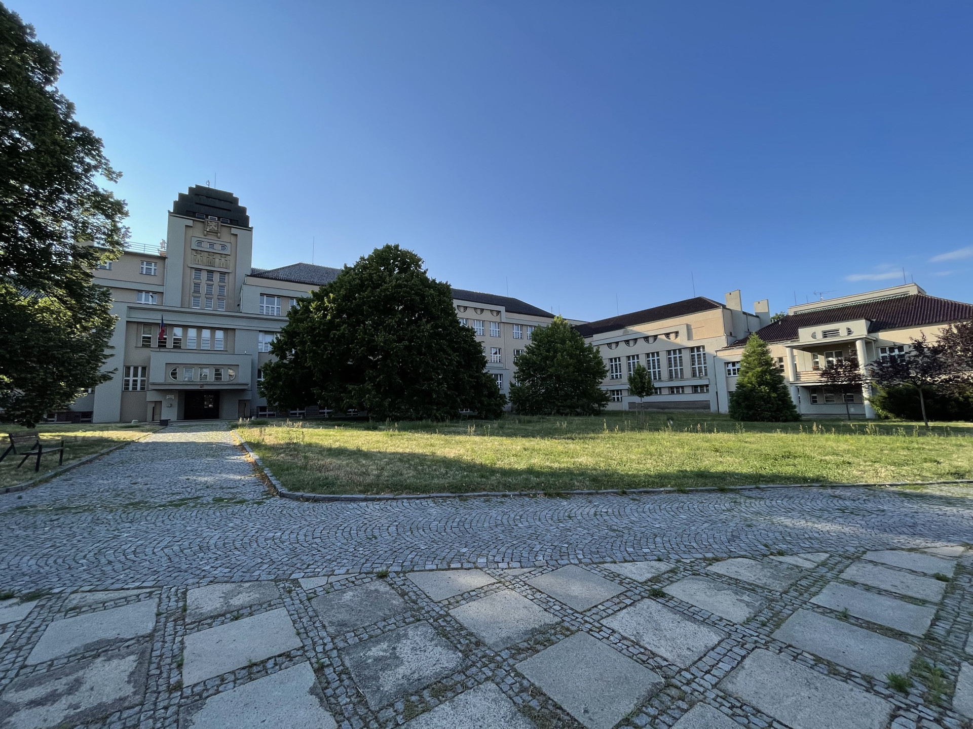 Při cestě zpátky z Kačiny do Kutné Hory jsem ještě přibrzdila v Masarykově ulici na kutnohorském předměstí Hlouška, kam se v meziválečném období soustředila výstavba reprezentativních budov. Jakožto hlavní komunikační osa se Sedlcí to byla lukrativní adresa. Nejpůsobivější budovou se zde stala Zemská průmyslová střední škola. Autorem návrhu tohoto rozsáhlého areálu s parkovou úpravou je místní architekt Rudolf Ryšán, který zakázku získal v architektonické soutěži.
