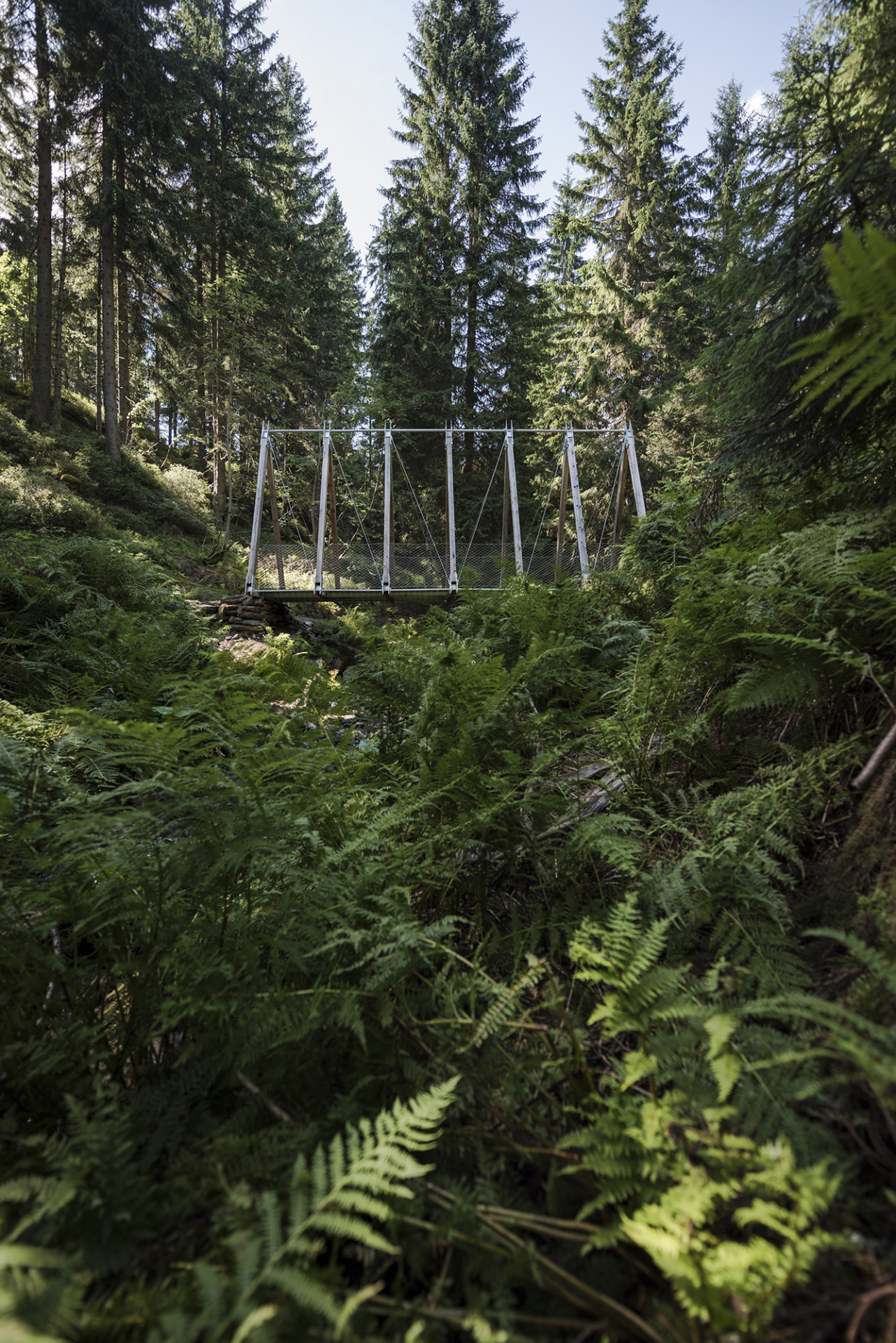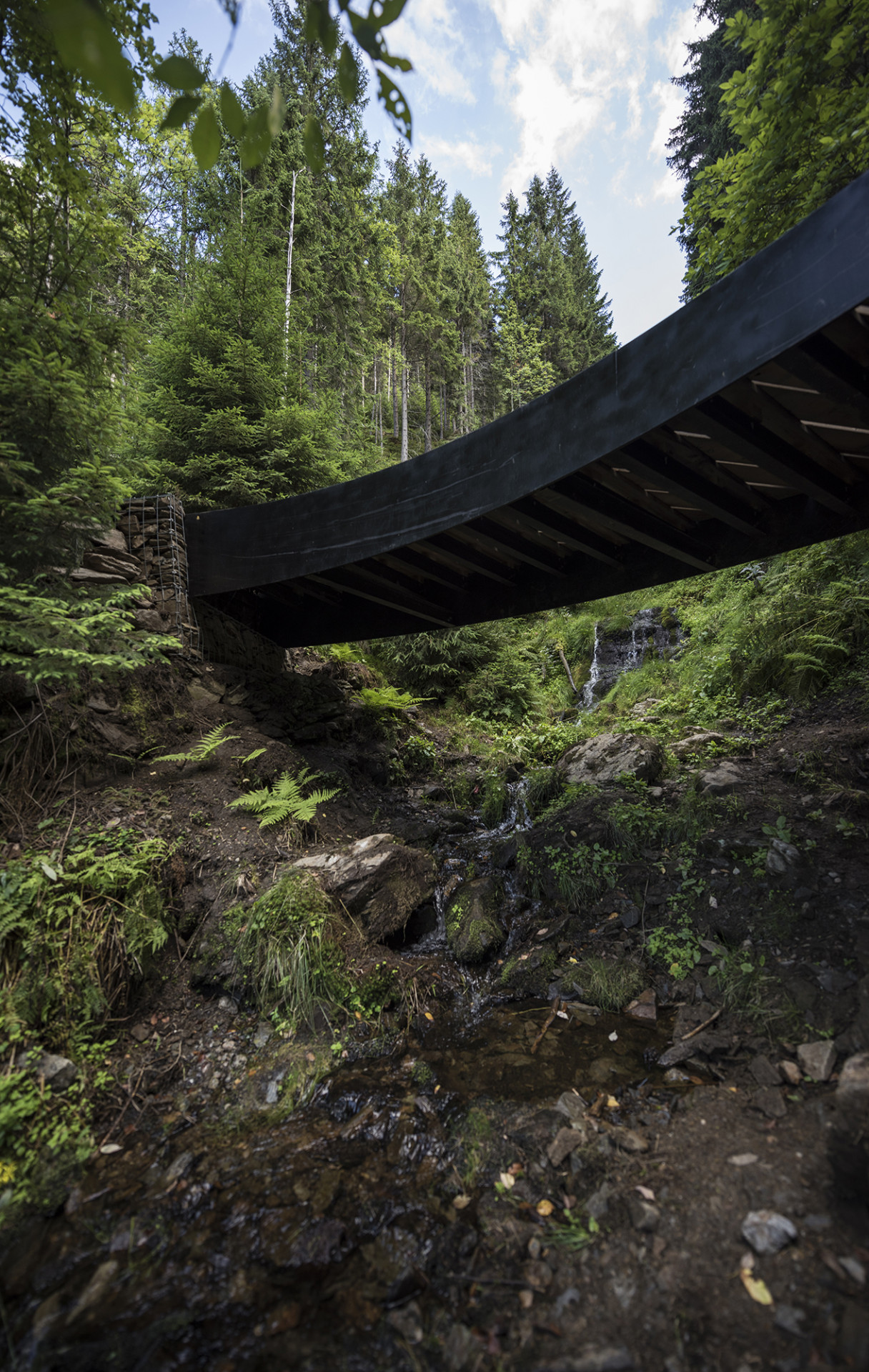 Lávka v lavinové oblasti kopíruje terén a přirozeně se stáčí ve směru stezky. Dva hlavní nosníky překonávají sedmimetrový rozpon a přirozeně propojují dvě různé výškové úrovně. Po horní linii vnějšího nosníku probíhá lavička, ze které je výhled do údolí. Cedrové dřevo, ze kterého je lávka vyrobena, i téměř dva roky po dokončení exoticky voní.
