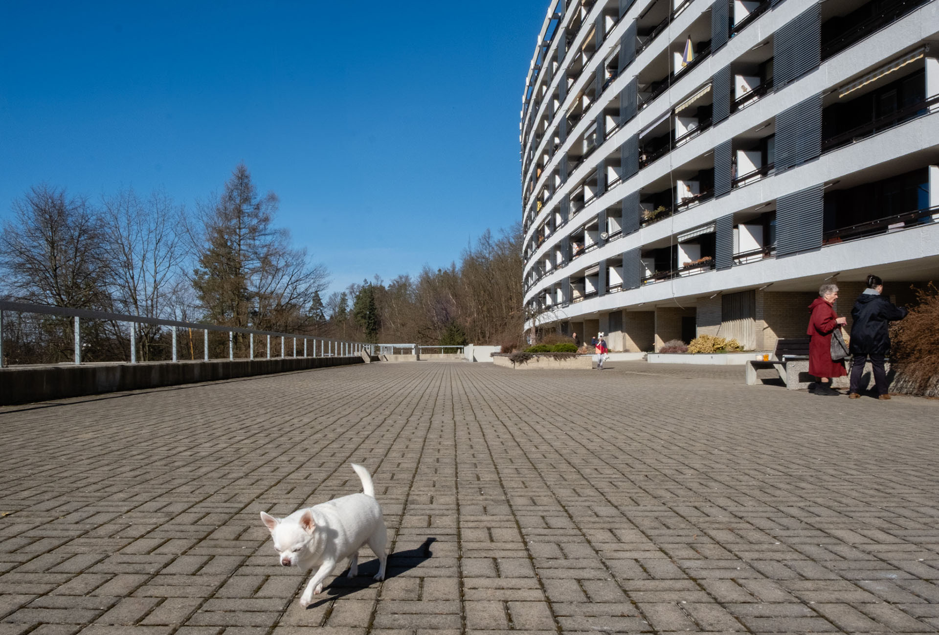Nad montovaným domkem se tyčí další dílo z pera Karla Hubáčka - zaoblený bytový dům z 60. let minulého století přezdívaný Wolkerák. Dům, který Hubáček a Jaromír Vacek zasadili do svahu Liberecké výšiny, působí, jakoby se opíral o hřeben Jizerských hor a dnes z pohledu urbanismu patří mezi nejlepší příklady panelových domů zasazených do krajiny.