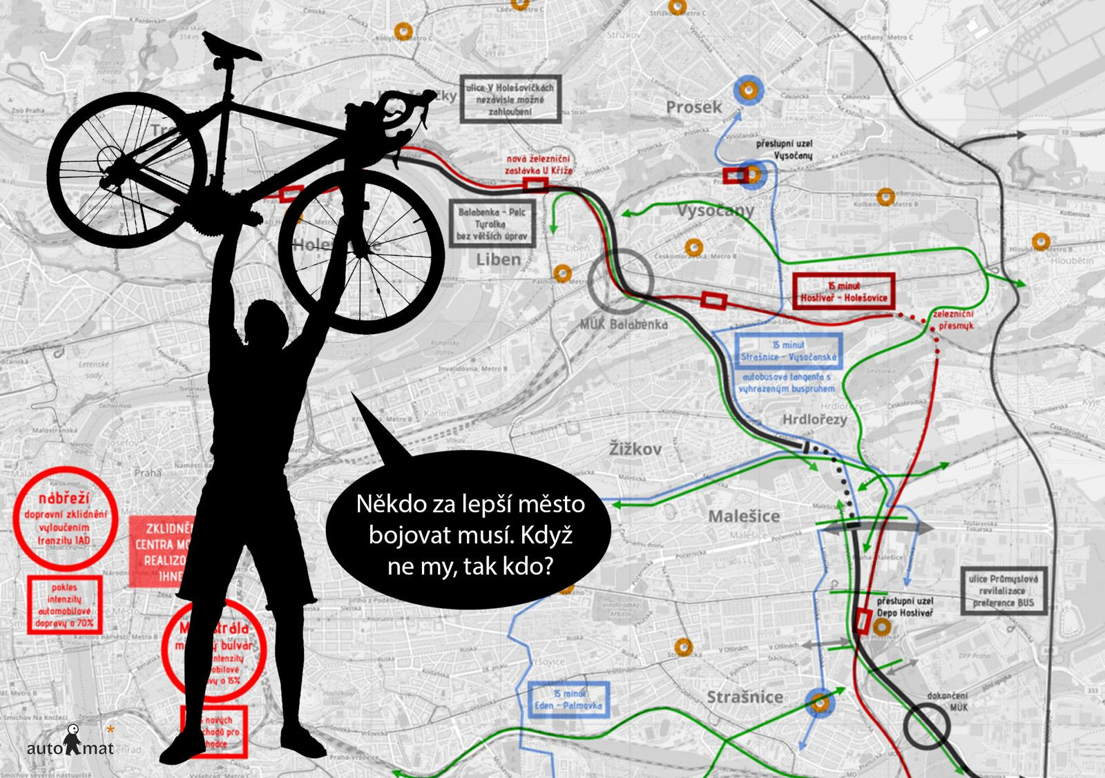 Jednou z velmi aktivních organizací, která se dlouhodobě věnuje advokační činnosti na území hlavního města, je spolek Auto*mat. Byť Auto*mat začínal jako iniciativa propagující městskou cyklistiku, s postupem času se spolek začal věnovat zlepšování kvality městského prostoru obecně. Dnes se Auto*mat zaměřuje na hodnocení efektivity dopravních projektů navrhovaných veřejnou správou (tunel Blanka), formulaci a propagaci alternativ dopravních řešení (Vize pro mobilitu a veřejný prostor Praha 2025, Městský okruh pro všechny), organizaci happeningů, které obyvatelům umožní okusit jiný způsob užívání veřejného prostoru (cyklojízdy, Zažít město jinak) a mimo jiné i neustálou osvětu o možnostech udržitelné mobility (Vzdělávání Auto*mat). Za více než deset let práce se Auto*mat stal významnou protiváhou skupin podporujících investice do motorové dopravy ve městě a hlasem občanů, kteří usilují o lidštější přístup k rozvoji města.