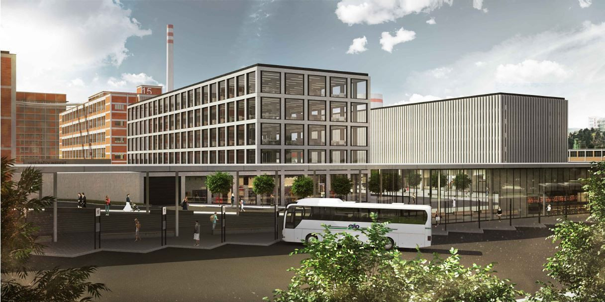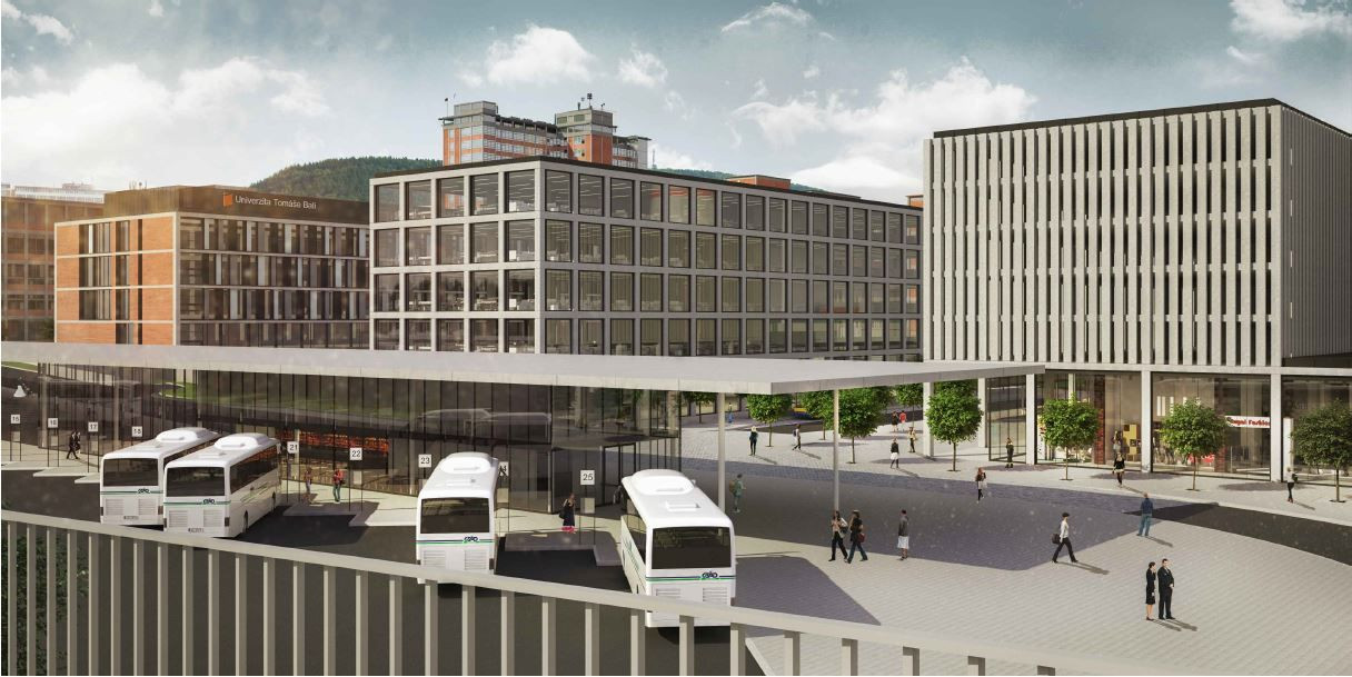 Urbanistická studie počítá s umístěním dopravního terminálu v prostoru stávajícího autobusového nádraží, kde vzniknou hned tři nové objekty – výpravní budova vlakového nádraží, budova autobusového nádraží a komerční objekt. Výpravní budova vlakového nádraží je nově umístěna v linii s novou budovou UTB a nabídne i dostatečnou parkovací kapacitu pro odstavení vozů a následné využití služeb vlakového nebo autobusového dopravce. Plocha autobusového nádraží se oproti stávajícímu stavu zmenší a na ní vznikne výpravní budova se zázemím pro cestující. Uvolněný prostor bude využit pro stavbu nového komerčního objektu, který bude s výpravní budovou spojen podchodem.