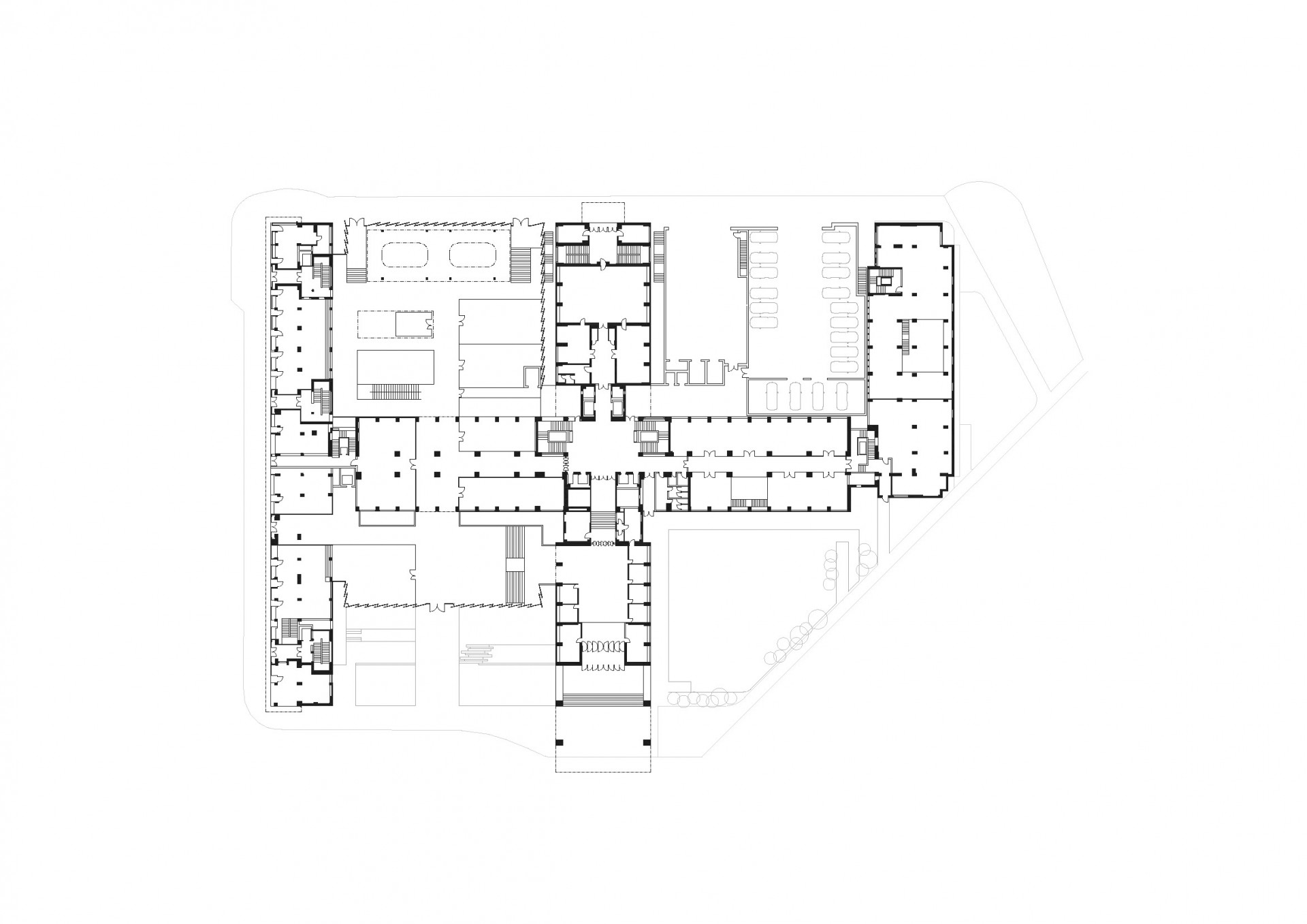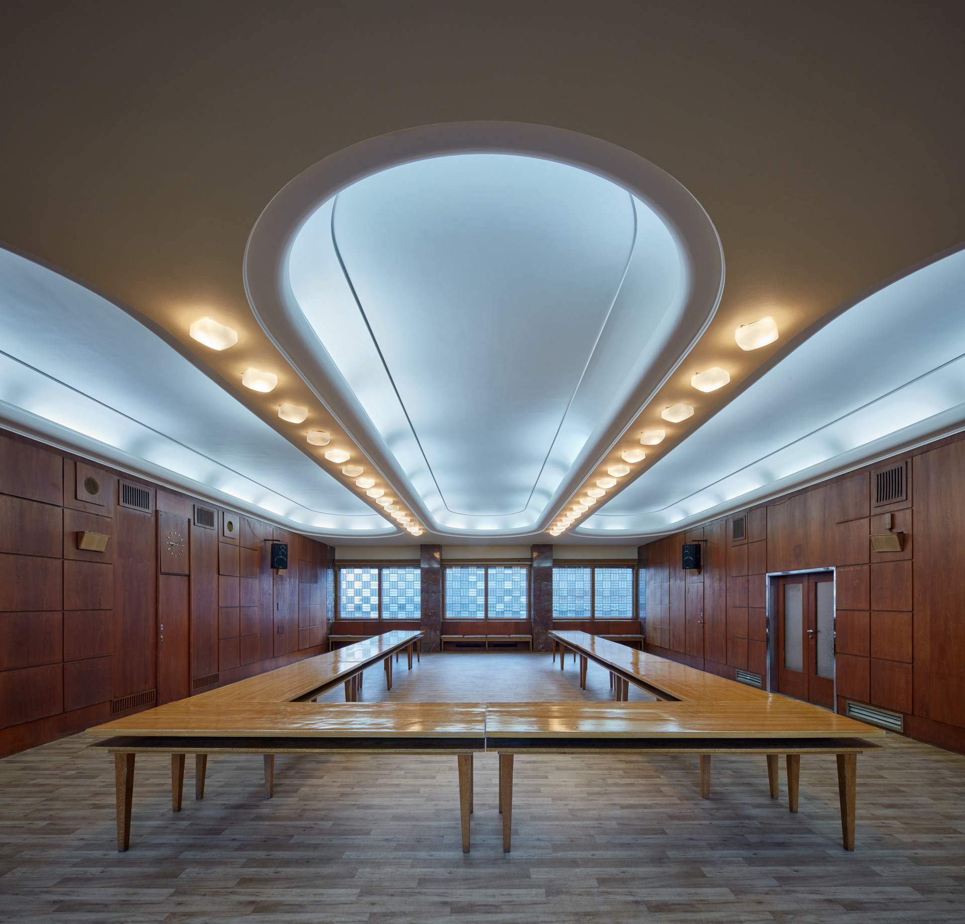 Co se týče změny interiérů, hodnotné původní prvky mají být zachovány. „V interiérech zůstávají zachovány historicky významné prostory a prvky, jako je kino Přítomnost, reprezentativní prostory zasedacích sálů a jejich předprostor s objekty telefonních budek, dále schodiště, zábradlí a související prvky. Celkově pak zůstávají v intaktní formě v součtu zachována celá dvě patra,“ upřesňují autoři návrhu.