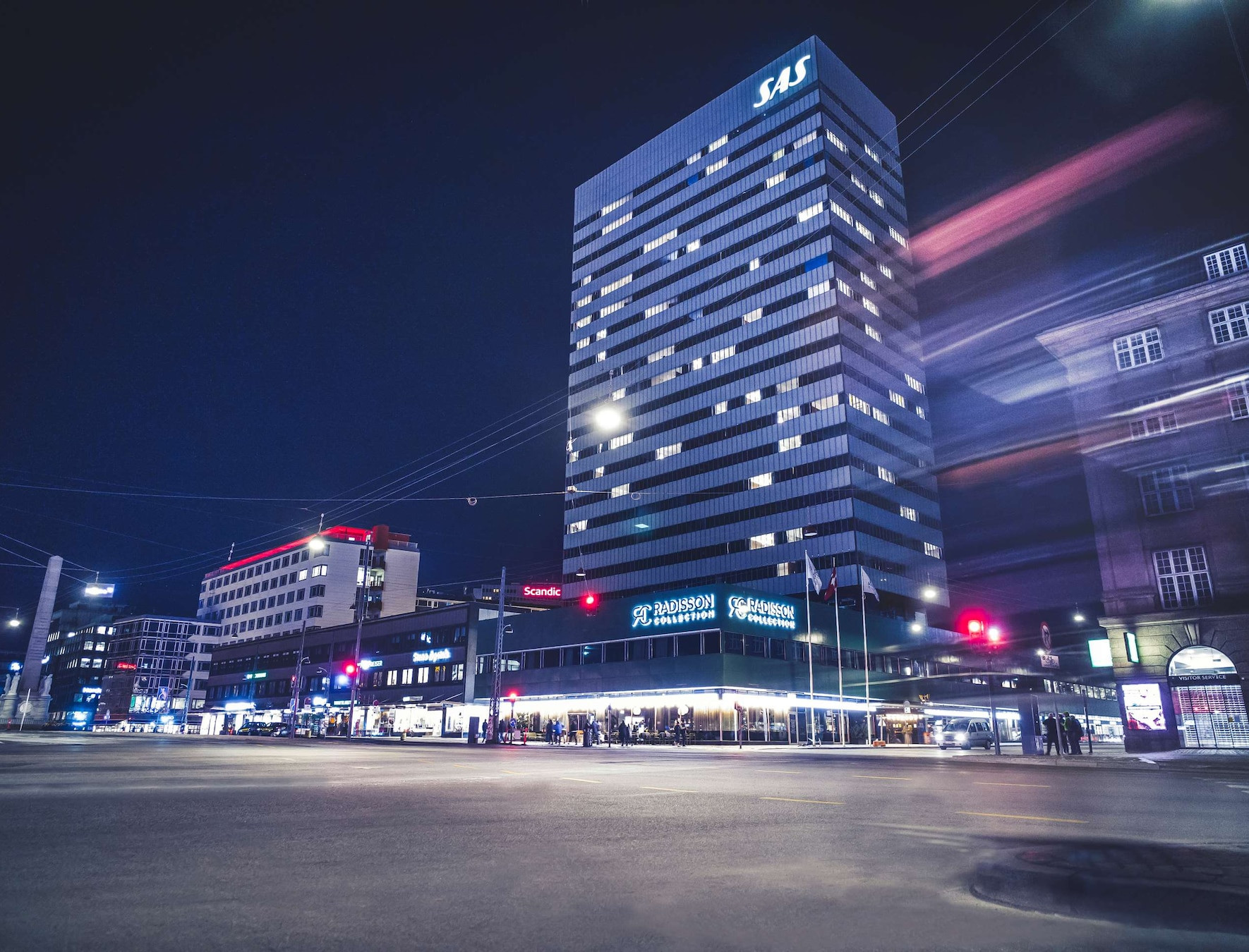 SAS Royal Hotel byl postaven jako dopravní uzel, který nejenom že ležel na vlakovém nádraží, ale hlavně měl fungovat jako odbavovací terminál pro cestující letecké společnosti Scandinavian Airlines System (SAS). Terminál, který se nenachází na letišti, ale přímo v centru města, měl být pro cestující pohodlnou volbou dopravy do zahraničí. Možnost odložit si zavazadla a následně jet již „na lehko“ přímým spojem na letiště, měl být vítaným servisem. Hotel se totiž stavěl v době, kdy mezinárodní letecká doprava patřila mezi výdobytky luxusu.