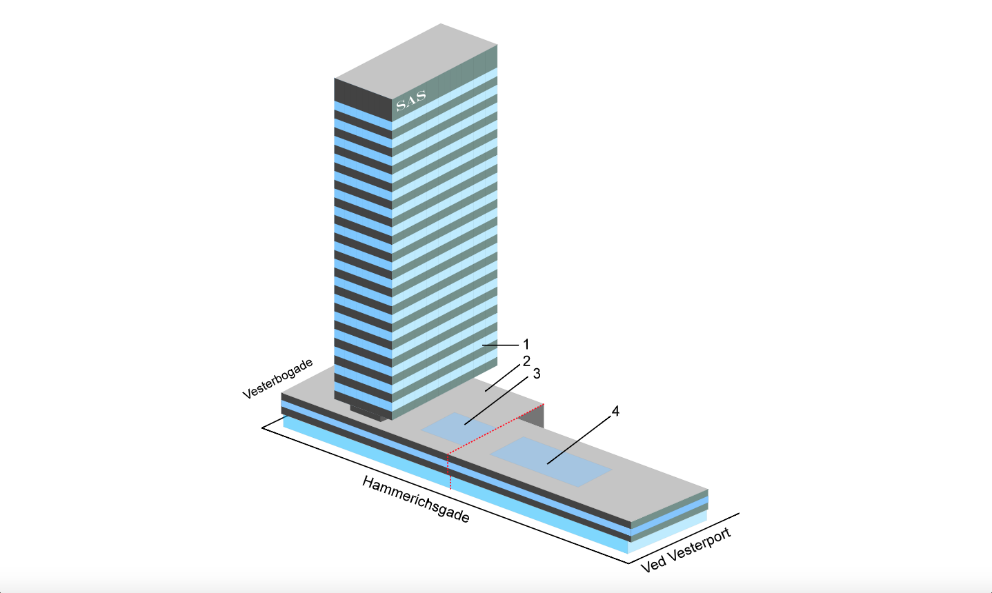 Umístění výškové stavby v centru města s sebou přinášelo úskalí, jak budovu zakomponovat mezi okolní zástavbu. Jacobsen tuto výzvu vyřešil dvěma způsoby. V první řadě věnoval velkou pozornost zpracování fasády. Veškeré nosné prvky stavby, sloupy, protipožární betonové stěny atp. jsou schovány uvnitř – to Jacobsenovi umožnilo vytvořit lehkou, skleněnou fasádu bez jakéhokoli narušení. Na vertikální hotelové části pláště pak Jacobsen vytvořil strukturu z eloxovaného hliníku a zelenošedých skleněných plátů.