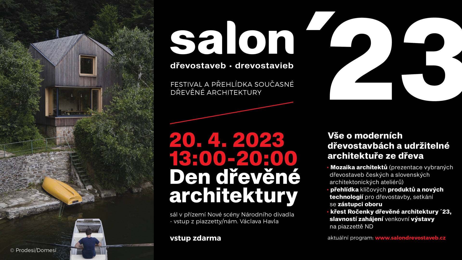 Od 19. dubna do 17. května proběhne na piazzettě Národního divadla kurátorská výstava dřevěné architektury, která se koná v rámci Salonu dřevostaveb, festivalu a výběrové přehlídky současné dřevěné architektury v Čechách a na Slovensku.