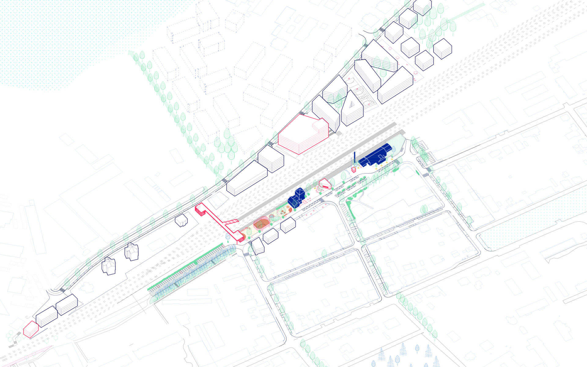 Eliška: To máme určitě každý jinak. Mě postupem času začaly na škole bavit a dávat mi smysl projekty většího měřítka, hlavně potom u Ivana Kroupy na Umprumce. Na diplom jsem se rozhodla zpracovávat celou jižní periferii Prahy. S Marií jsme pak pracovali v CCEA MOBA. Tam jsem se dostala k návrhu územní studie Ďáblic nebo územnímu plánu Chýňavy. To mě přesvědčilo, že mě baví urbanismus.