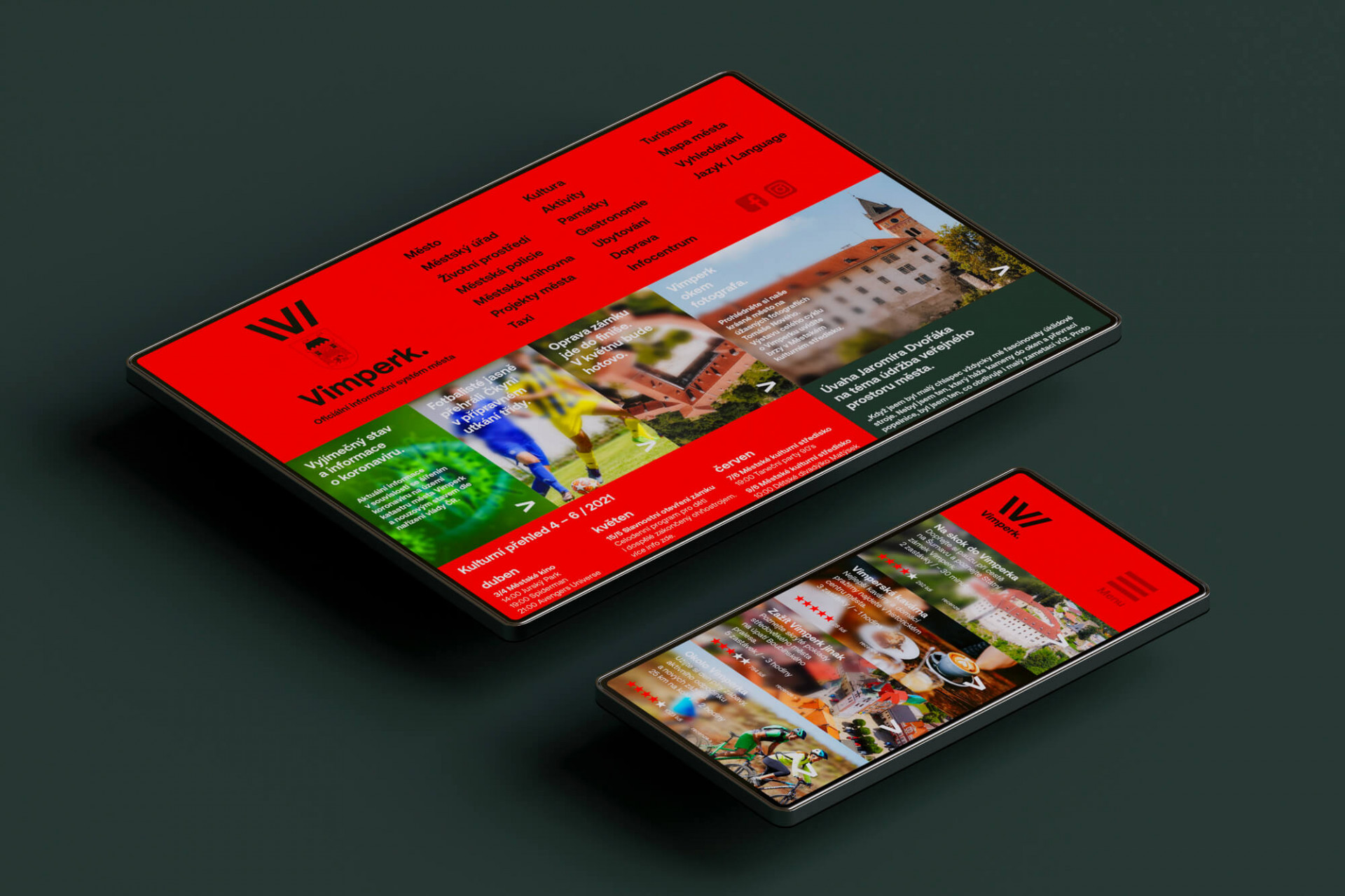 Jihočeský Vimperk představil novou vizuální identitu. Autorem návrhu je designér Matěj Chabera, držitel ceny Czech Grand Design – grafický designér roku 2017. Město vypsalo na konci léta 2020 uzavřenou soutěž, do které oslovilo 5 studií. Koncept nové vizuální identity stojí na plynulém sladění silné knihařské minulosti a současné sebevědomé vize města. Nové logo pracuje s písmenem V a suverénní tečkou na konci. Komplexní vizuální proměna šumavského města obsahuje veškerá typická témata od loga, přes tiskoviny, návrh webových stránek až po navigační prvky ve veřejném prostoru, na kterých Chabera úzce spolupracuje s městským architektem René Dleskem. Návrh se bude implementovat v průběhu roku 2021, kdy město čeká otevření rekonstruovaného Státního zámku Vimperk.