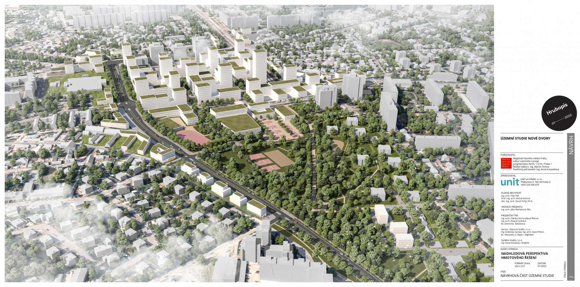 Studio Unit architekti vytvořilo pro Odbor územního rozvoje Magistrátu hl. m. Prahy územní studii celého transformačního území, která byla projednána se zástupci Městské části Praha 4 a Praha 12 a formou participace s veřejností. Představuje společenskou dohodu o rozvoji území a je koncepčním východiskem pro přípravu jednotlivých projektů. Vychází z principů udržitelného rozvoje, kompaktního města krátkých vzdáleností a rozmanitého města plného zeleně.