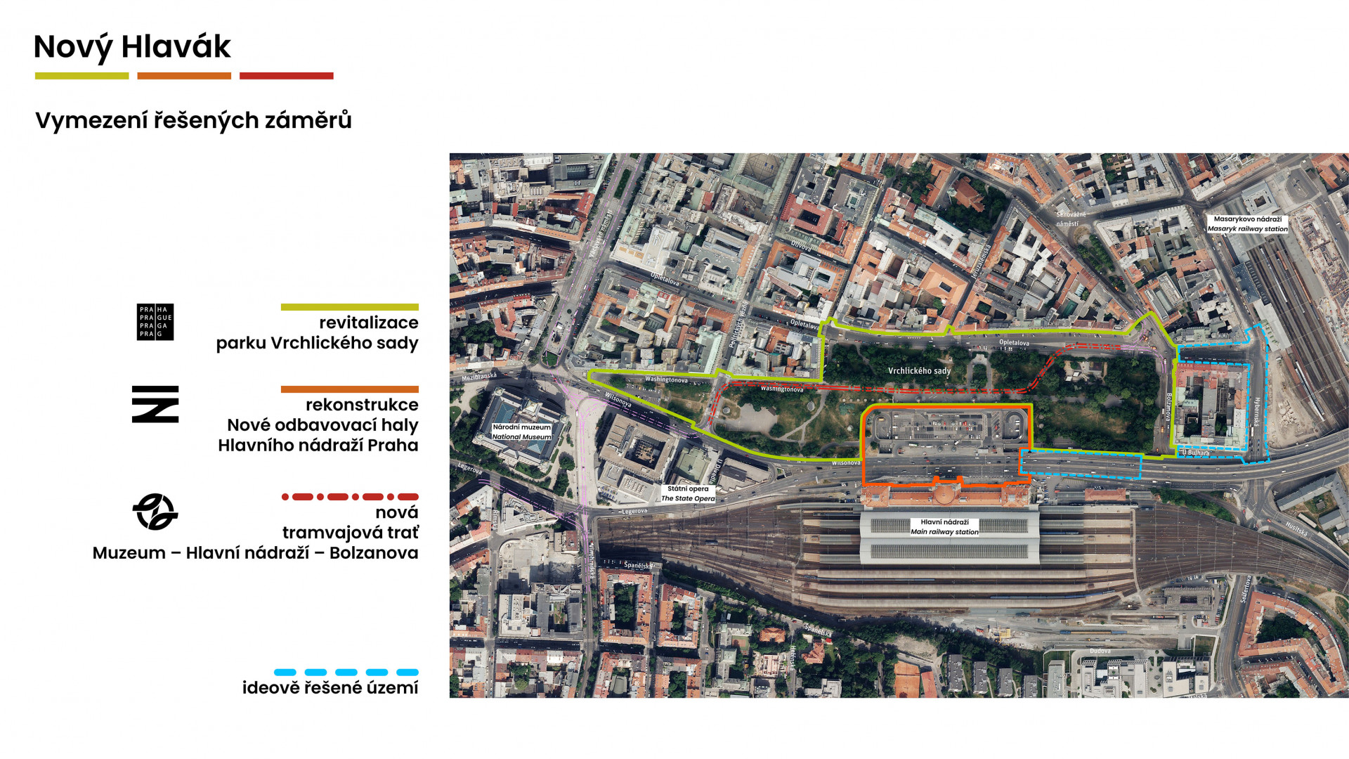 Adam Scheinherr, náměstek primátora pro oblast dopravy, dodává: „Za poslední desítky let se bohužel nepodařilo zbavit nejvýznamnější nádraží v zemi pověsti problematického a nepříliš oblíbeného místa. Tuto situaci chceme změnit také stavbou nové tramvajové trati mezi Muzeem a Bolzanovou ulicí, která umožní umístit zastávku tramvaje přímo před nádražní budovu, podobně jako je tomu na blízkém Masarykově nádraží. Společně s rekonstrukcí Vrchlického sadů, historickou i novou budovou hlavního nádraží vznikne v příštích letech důstojný, funkční a reprezentativní vstup do hlavního města.“