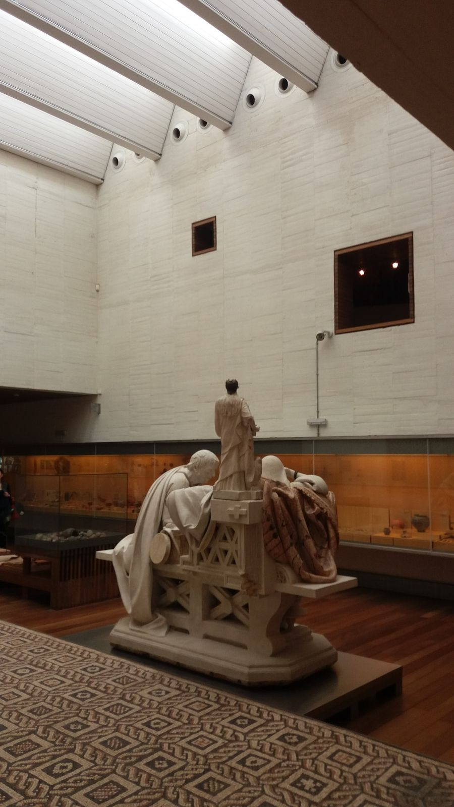 Ano, protože opravdu není dobré. Vidíte, že fasáda i interiér jsou zavěšeny na ocelové konstrukci, tvarování je naprosto falešné vůči vnějšku i vnitřku. Vnitřek, ať už kamenné nebo sádrokartonové obklady, představuje jakousi scénografie a nemá nic společného s vnějškem a vůbec nechápete logiku, proč je to tedy takto tvarované. Všechny světlíky, které přiváděly do expozic denní světlo, jsou zabedněny sádrokartonem, takže přirozené světlo tam vůbec není. Zřejmě to nefungovalo. Na podlaze je laciné lamino s potiskem dřeva. To jsem v životě v galerii neviděl. (smích). Přitom to muselo stát neskutečné peníze. Když jsme z muzea vyšli ven, tak jsme si kladli otázku, co v něm bylo vlastně dobře udělané?