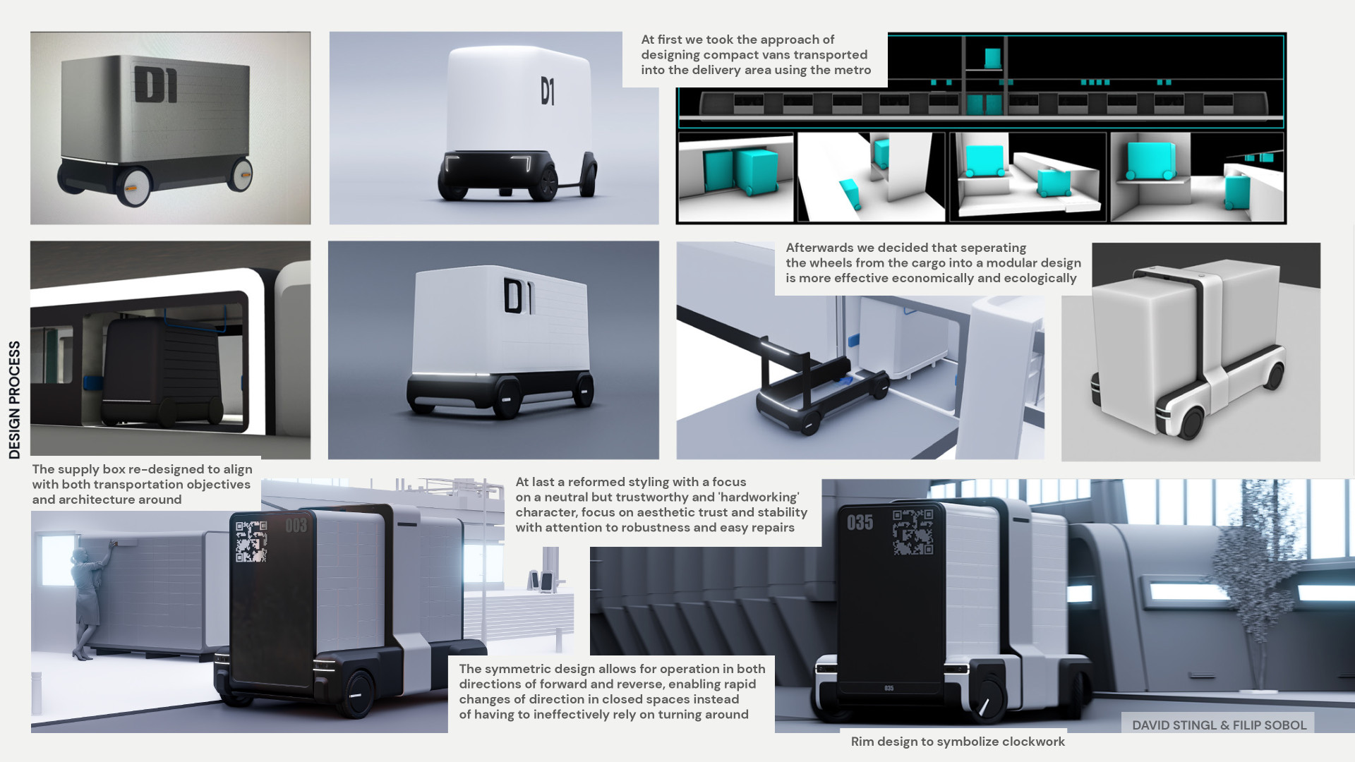 Obecné téma se soustředilo na autonomní metro. Filip Sobol s Davidem Stinglem problém pojali šířeji a zaměřili se na problematiku zásobování metropolí. Autoři zkoumali možnosti inovací současné infrastruktury center velkých měst a s ní spojené ekologické zátěže a snížené kvality života obyvatel. „Přemýšleli jsme, jak téma zpracovat a dát mu přidanou hodnotu. Autonomní metro je běžnou součástí mnohých měst a jeho funkci jsme obohatili právě o zásobování. Přesunutí zásobování pod zem a zároveň využití stávající sítě metra, je ideálním řešením pro komplexnější regulaci dopravy ve velkých metropolích, jako je například New York,“ říká jeden z mladých designérů David Stingl.