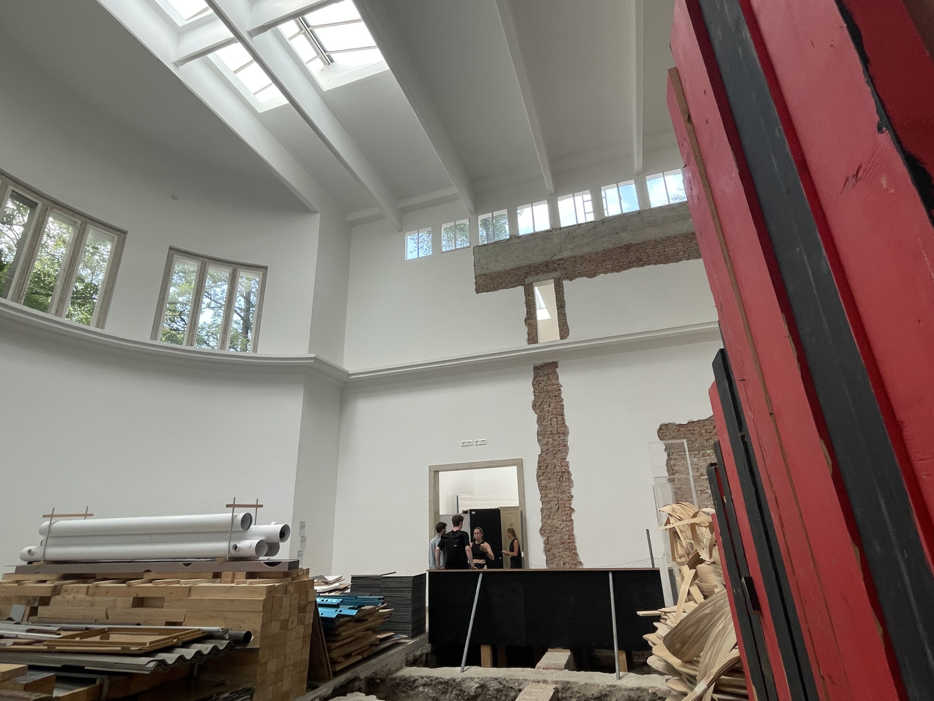 Naopak reálně ji můžeme vidět v konceptuálně uchopeném rakouském pavilonu, kde tým AKT a Hermann Czech zamýšleli trvalé participativní propojení stavby s malým náměstím hned za zdí Giardini, benátské úřady to však nepovolily. Kriticky je tak tematizovaná otázka veřejného prostoru, vlivu bienále na Benátky, a to vše v sochařsky adaptovaných kulisách původního pavilonu od Josefa Hoffmanna. Nedaleký český pavilon, postavený Otakarem Novotným, žákem Hoffmannova spolužáka Kotěry, je zavřený čtvrtým rokem. Podobné konceptuální uchopení z důvodu oprav asi není možné. Benátská byrokracie je nemilosrdná. Není divu, že NG hledala raději provizorní prostor v Arsenale.