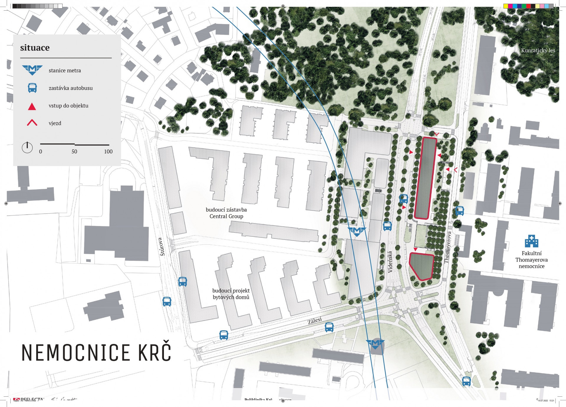 V lokalitě u Thomayerovy nemocnice vznikne nová městská čtvrť se 1400 byty, novou poliklinikou a víceúčelovou budovou, ve které bude umístěn také vestibul metra. V přízemí pak vznikne velké náměstí, v jehož okolí bude několik obchodů. Horní patra budovy budou sloužit jako kanceláře.