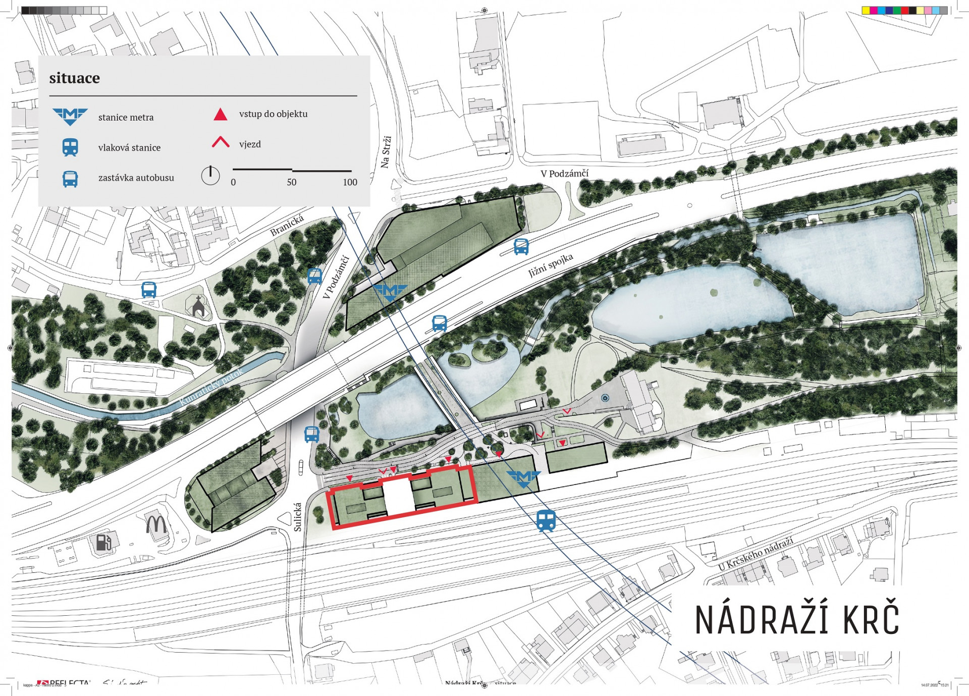 Stanice metra Nádraží Krč je umístěna v parku s rybníkem a v jejím okolí vzniknou tři nové administrativní budovy a hotel. Zároveň dojde k vybudování nového vlakového nádraží Krč a přestup na expresní linku 125 na Jižní spojce. Součástí proměny lokality bude i nové záchytné parkoviště P+R.