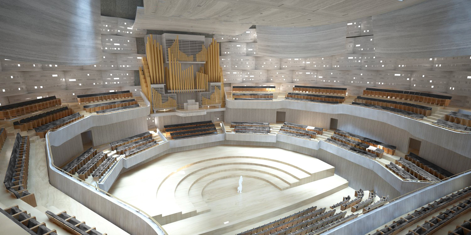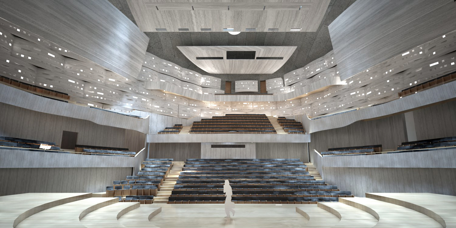 Plášť z recyklovatelného zinku, obložení sálů z javorového dřeva. Nový koncertní sál v Ostravě má hotovou studii