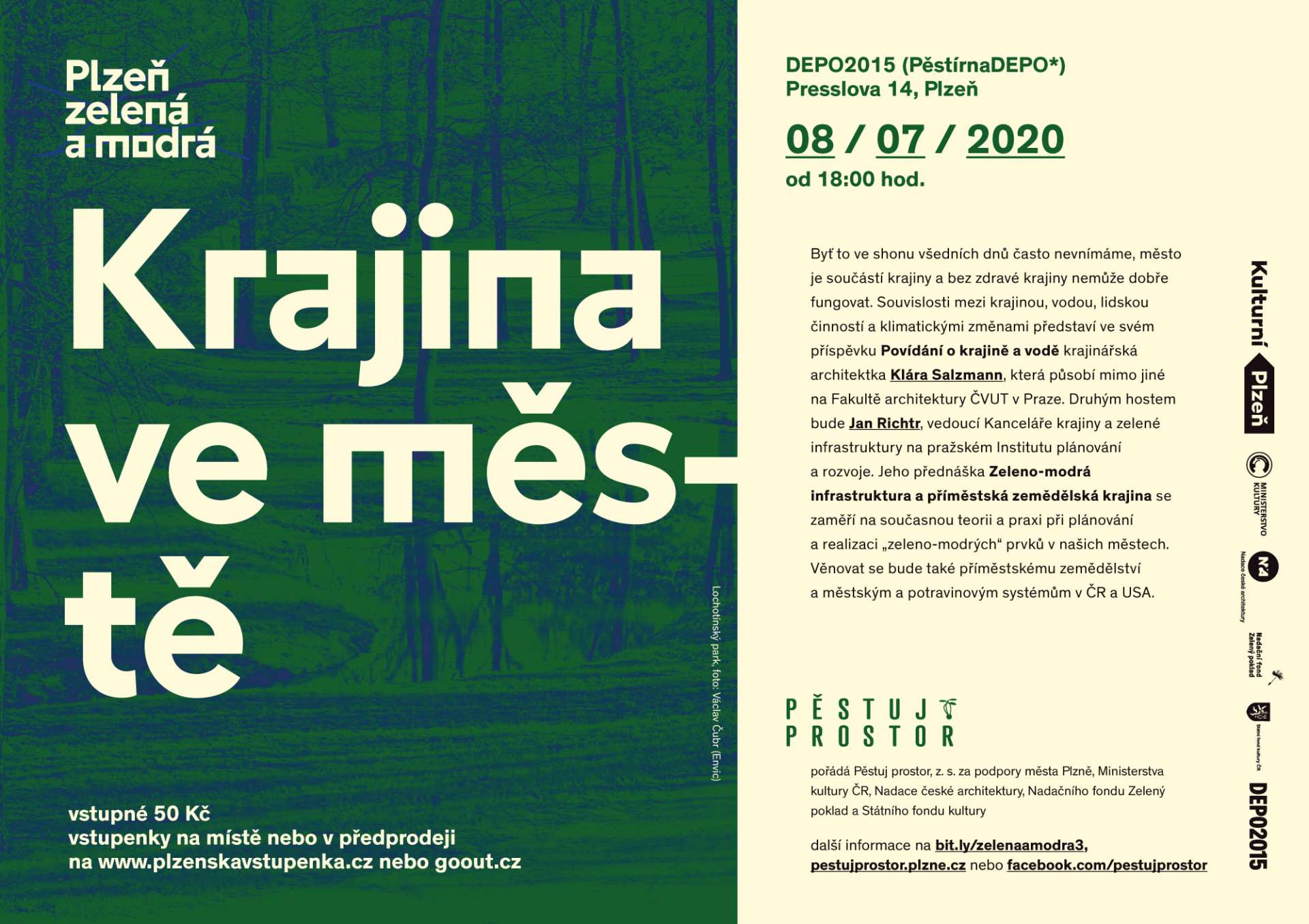 Ve středu 8. července se v komunitní zahradě PěstírnaDEPO (v areálu DEPO2015) uskuteční třetí část přednáškového cyklu PLZEŇ ZELENÁ A MODRÁ zaměřeného na adaptaci měst na změnu klimatu, s podtitulem Krajina ve městě. Hosty večera budou krajinářská architekta Klára Salzmann a krajinný ekolog Jan Richtr.