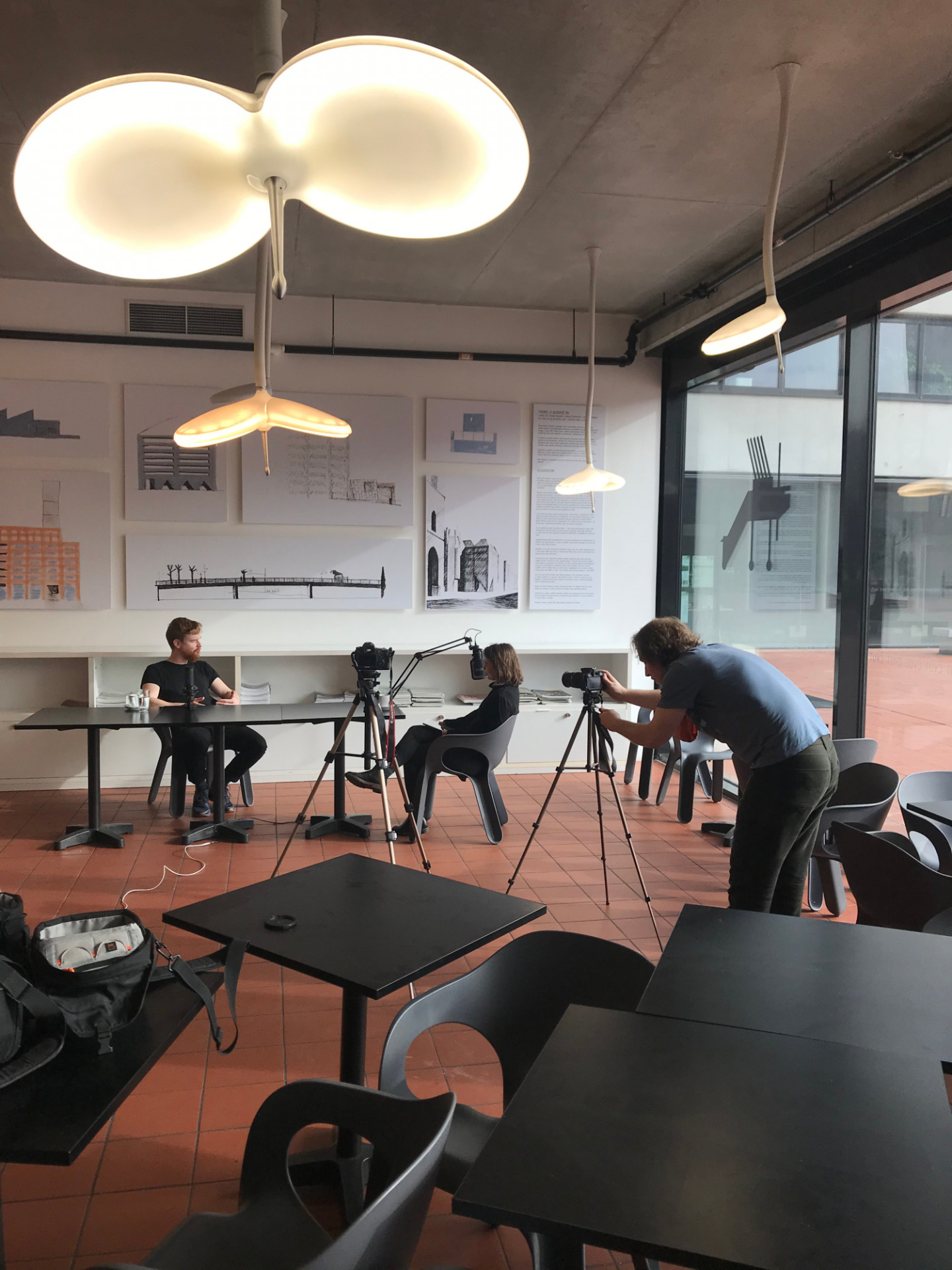 Do improvizovaného studia ve fakultní kavárně ArchiCafé přijali pozvání designer na volné noze Roman Kvita a architekt Vojtěch Sosna, odborný asistent fakultního ateliéru Rothbauer a zároveň spoluzakladatel ateliéru BOD architekti.